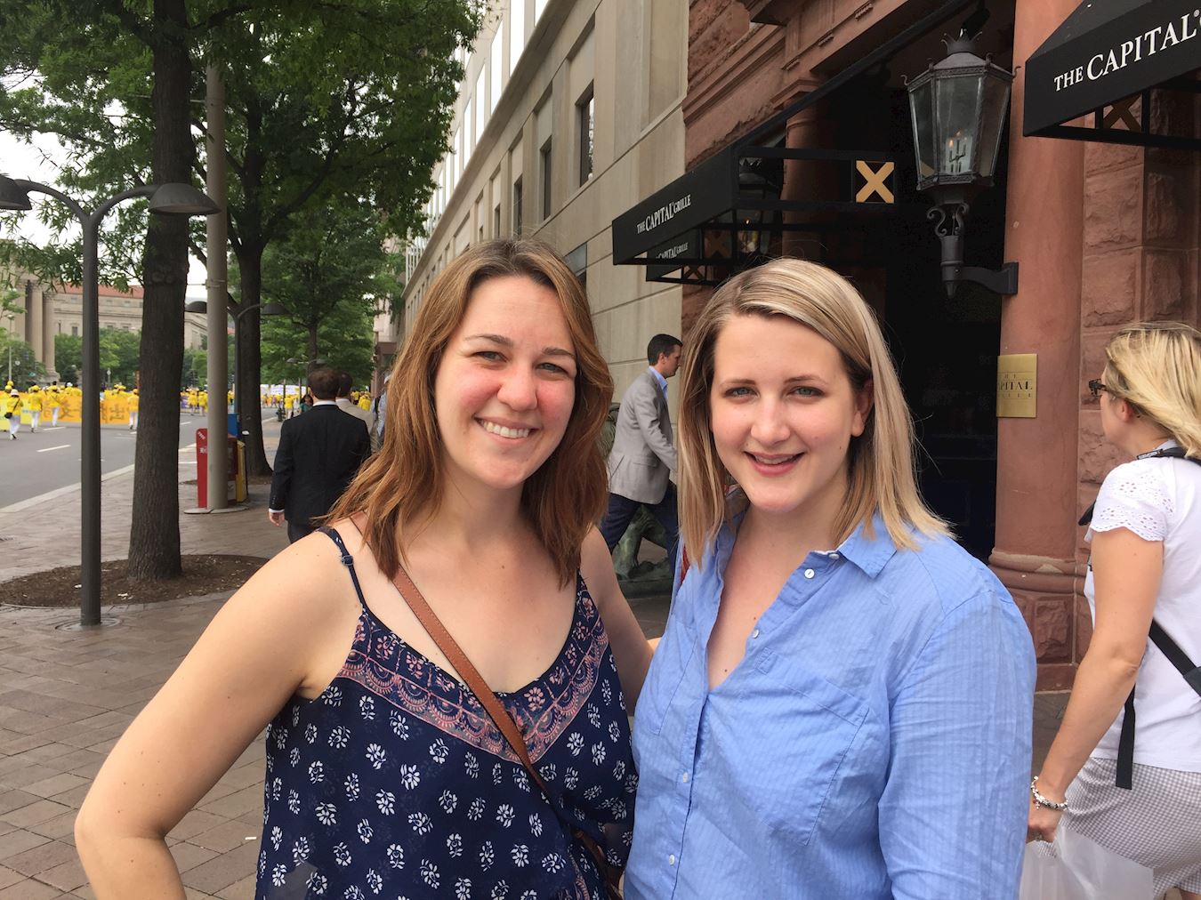 图21:萨波丽娜(右)从瑞士来,杰西是华盛顿当地人,她们都很喜欢法轮功的游行。