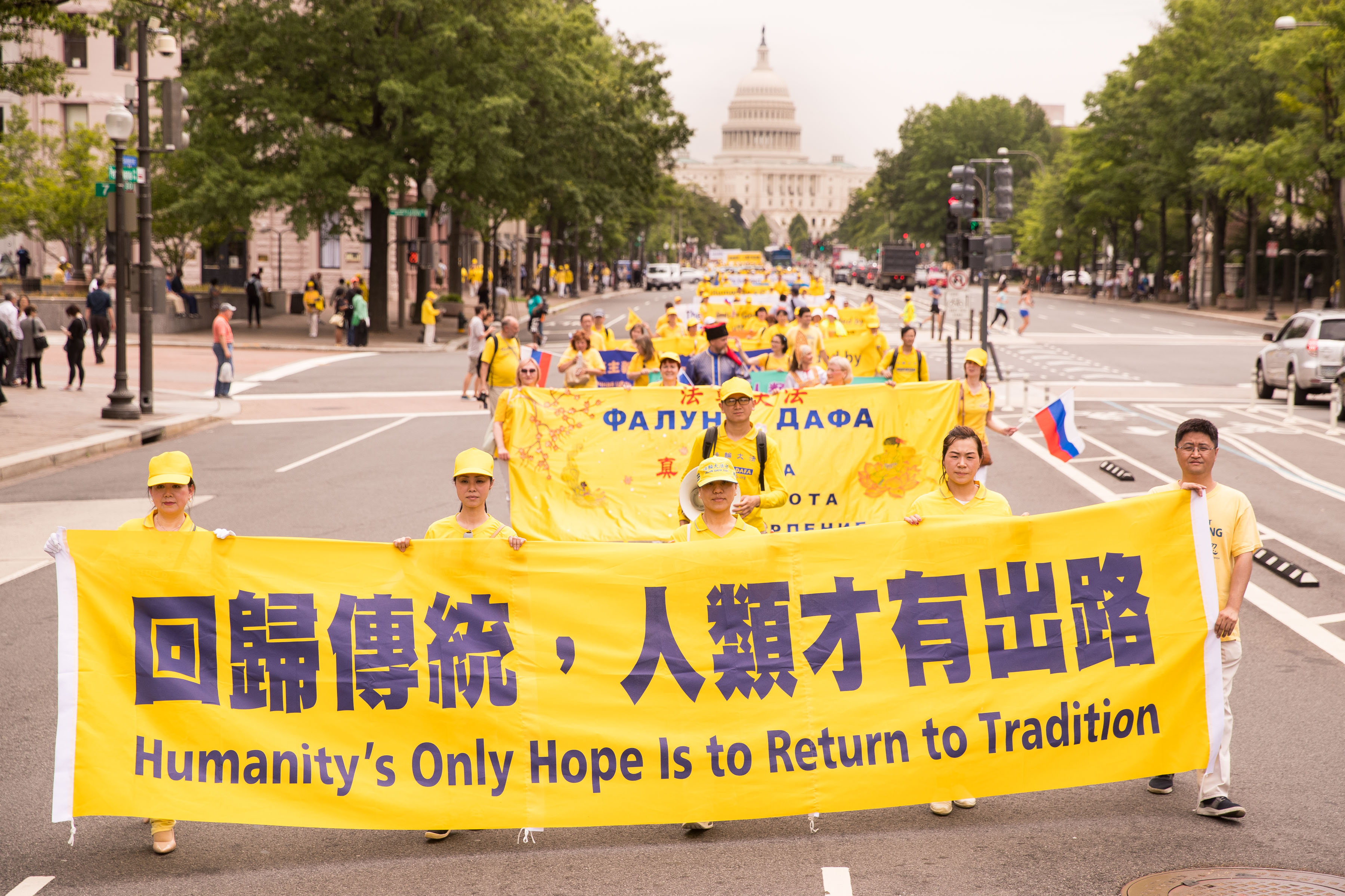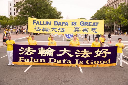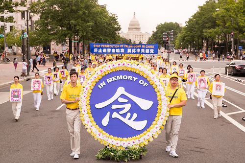 大游行于当天中午开始,天国乐团首先从国会西边草坪出发,后面是部份在中国被迫害致死法轮功学员的遗像,最后,也是最主要的部份是横幅队伍。游行队伍途经宾夕法尼亚大道、宪法大道、美国白宫,一直到华盛顿纪念碑前,全程共2.4英里。