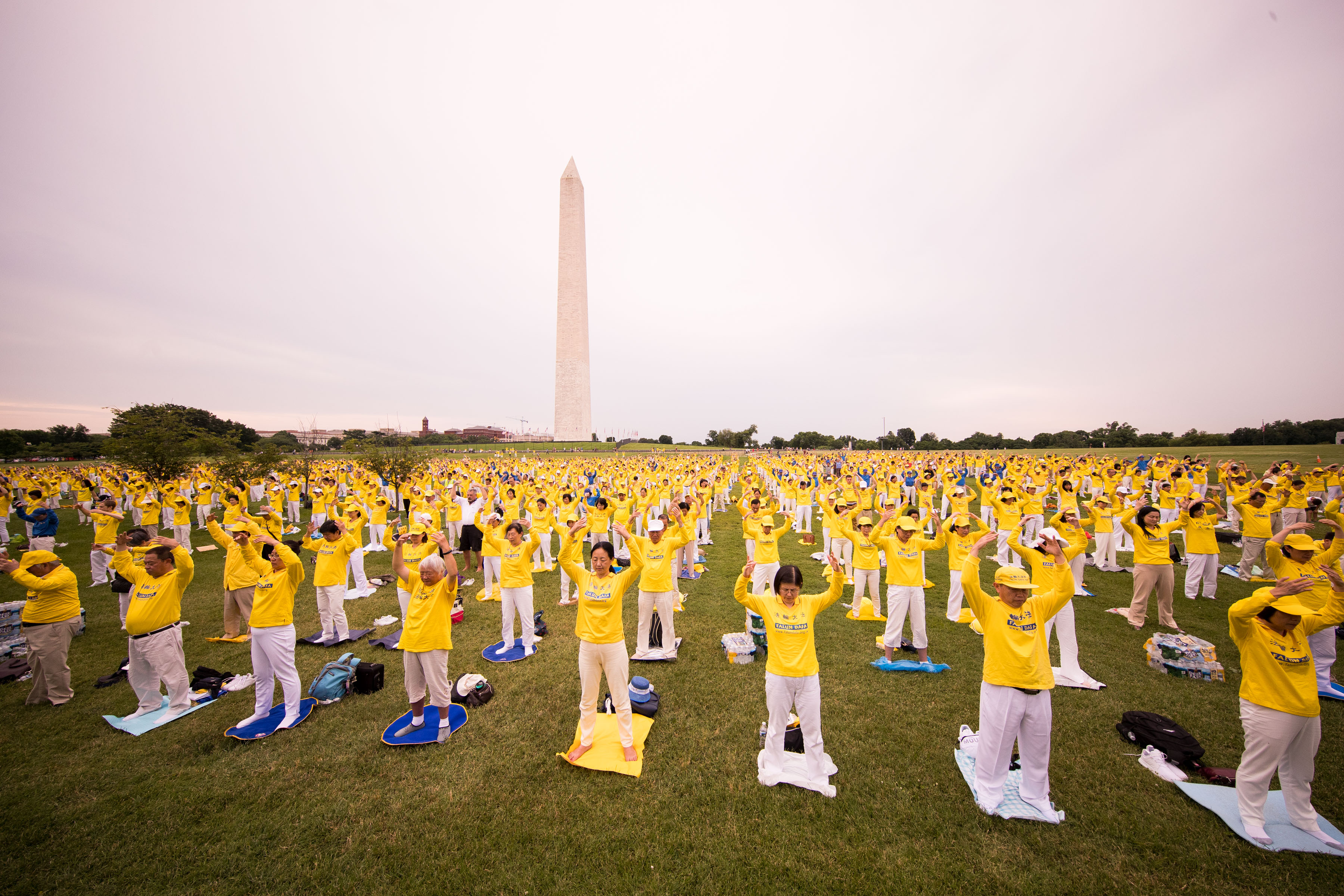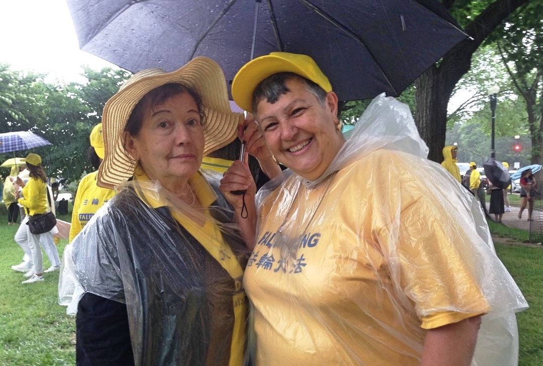 来自佛罗里达的俄国族裔的法轮功学员玛丽亚• 布朗史廷(Maria Bromshteim),今年六十多岁,她说:“跟所有来自世界各地的法轮功学员一样,我今天冒雨在这里坚持炼功和排字,是希望通过这个活动能让更多人知道法轮功的美好和在中共受迫害十几年的真相,希望各国政府都能站出发声,制止中共继续迫害法轮功。”