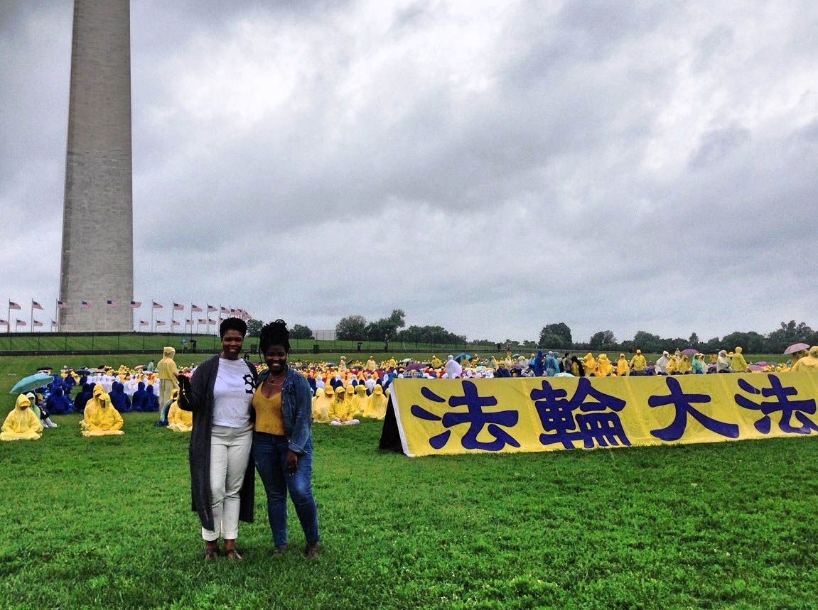 ![]() 图6:来自纽约的诗米拉(Shermira)她和女儿被炼功现场吸引。 |
