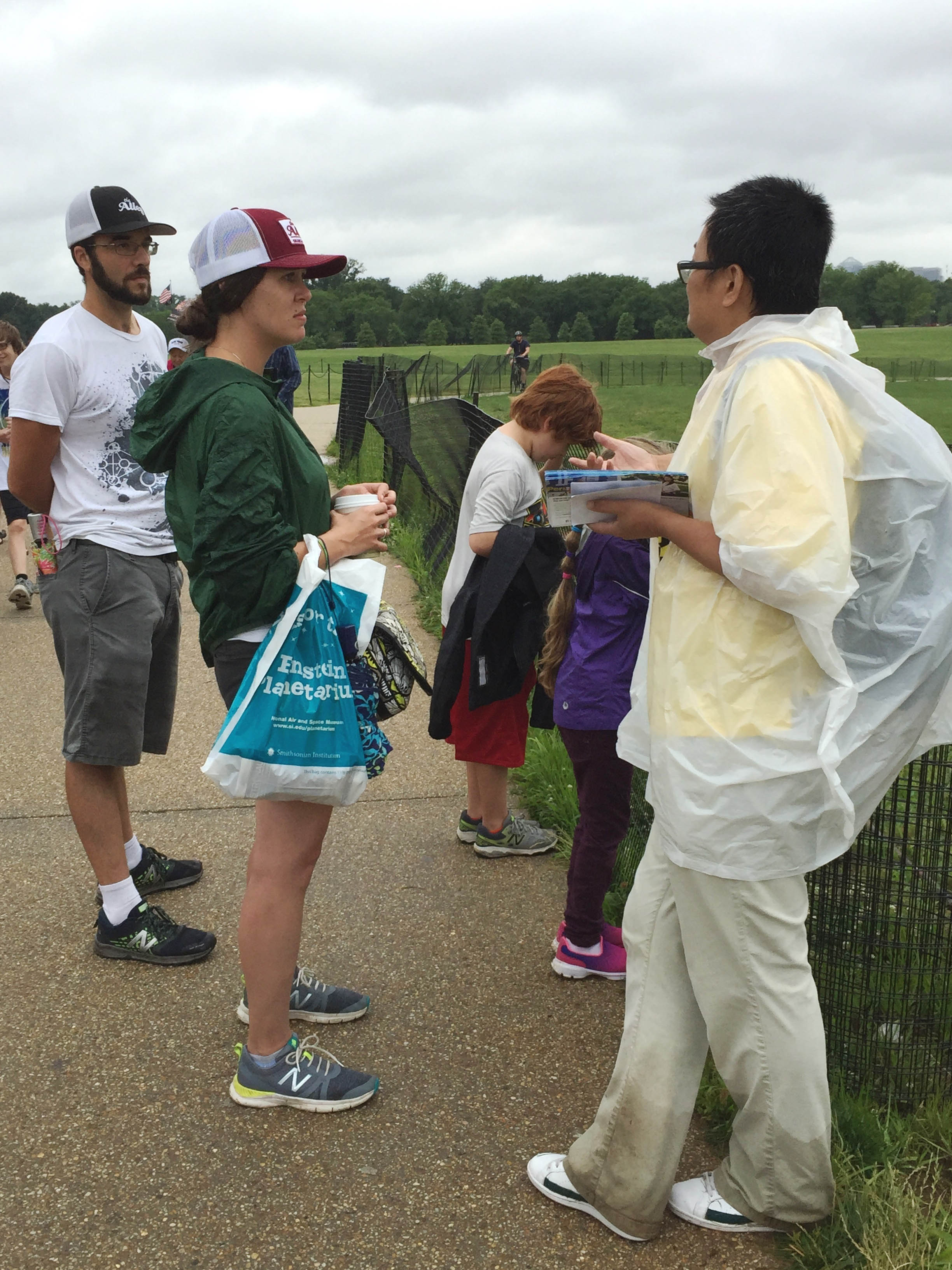 ![]() 玛蒂尔斯·克仁在宪法大道旁发法轮功真相传单 |