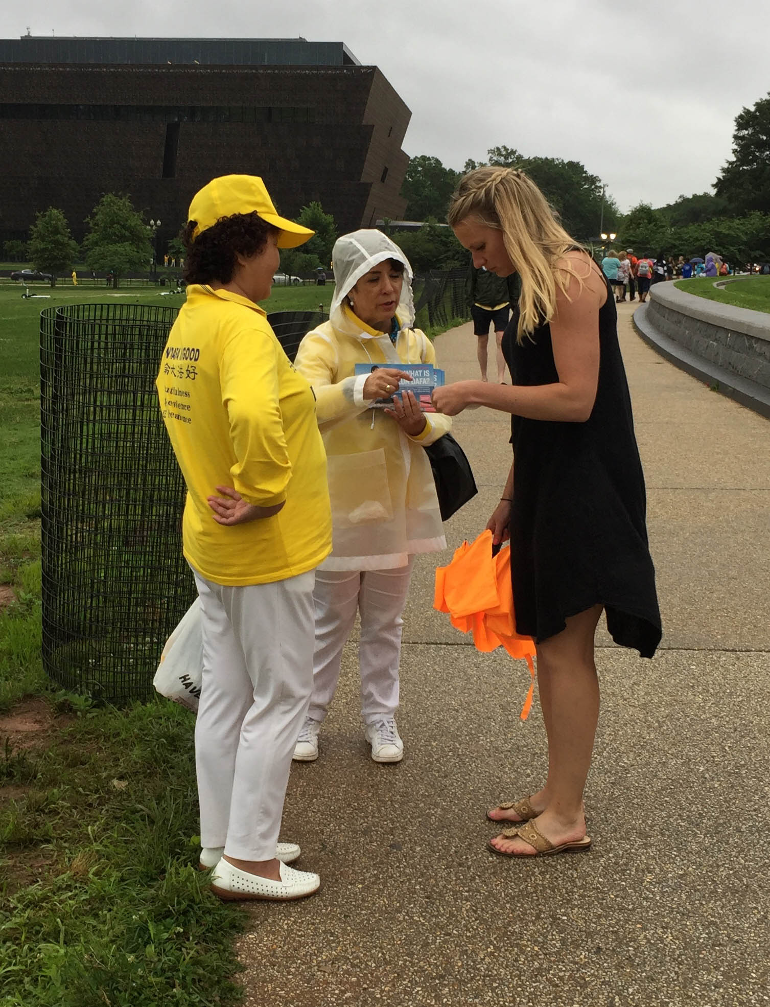 萨拉·伯恩(Sarah Bourne)来自南卡罗来纳州。她表示,“人们必须要站出来,说这(迫害)是不对的。纪念那些被迫害致死的人或者被遗忘的人。我们没有办法和他们联系,他们在承受苦难,不应该遭受的苦难。站起来说:这不能继续!我认为这绝对是高尚的,并且困难的事情。这场迫害持续了这么长时间,太可怕了。我认为你们正在做的非常非常重要。我为你们的勇气鼓掌。”
