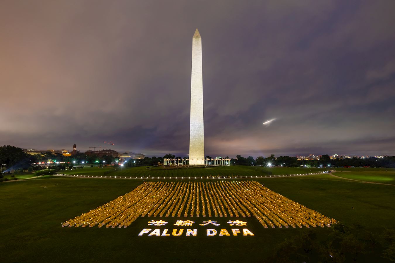 ![]() 图4:六月二十二日晚,法轮功学员在华盛顿纪念碑前举办烛光夜悼活动 |