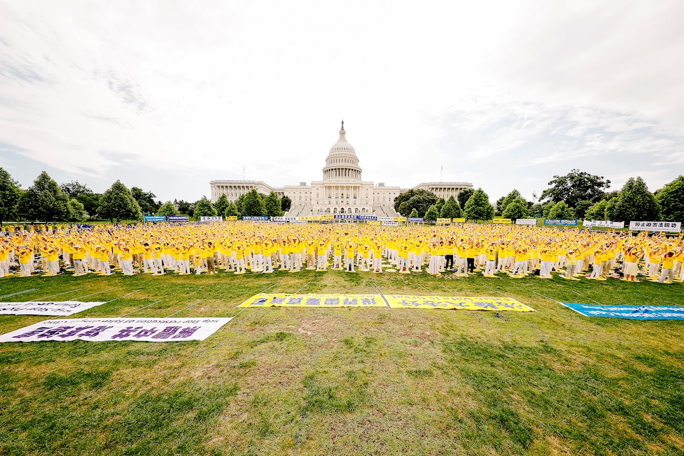 ![]() 图6:6月20日,华盛顿DC国会前几千人的集体大炼功。 |