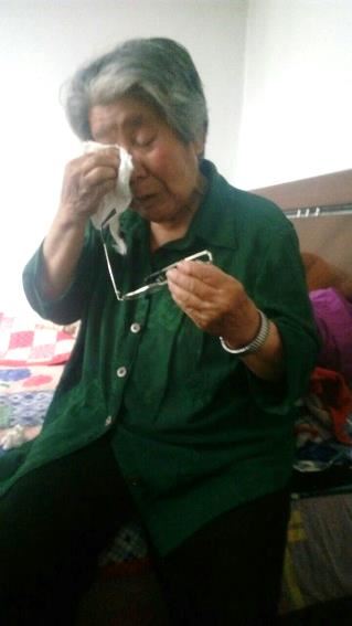 “我天天盼啊!盼儿子回家!没见小儿子已经有十个月了,尤其是过年、过节心里特别难受。妈妈现在岁数大了,儿子快回来吧!妈妈想你啊!”说到这里老人声音哽咽,伤心地抹着眼泪。眼前这幕凄惨景象,令人不禁潸然落泪。