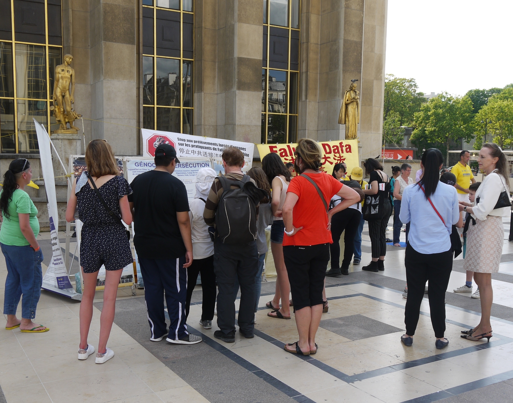 来自世界各地的游客和法国民众有机会了解法轮功及法轮功在中国无辜遭受迫害的真相。人们被祥和的功法演示吸引,被中共的残酷迫害所震惊,他们纷纷表达自己希望迫害早日停止的心声,不少人在征签表上签字,有的人表示要学炼法轮功。