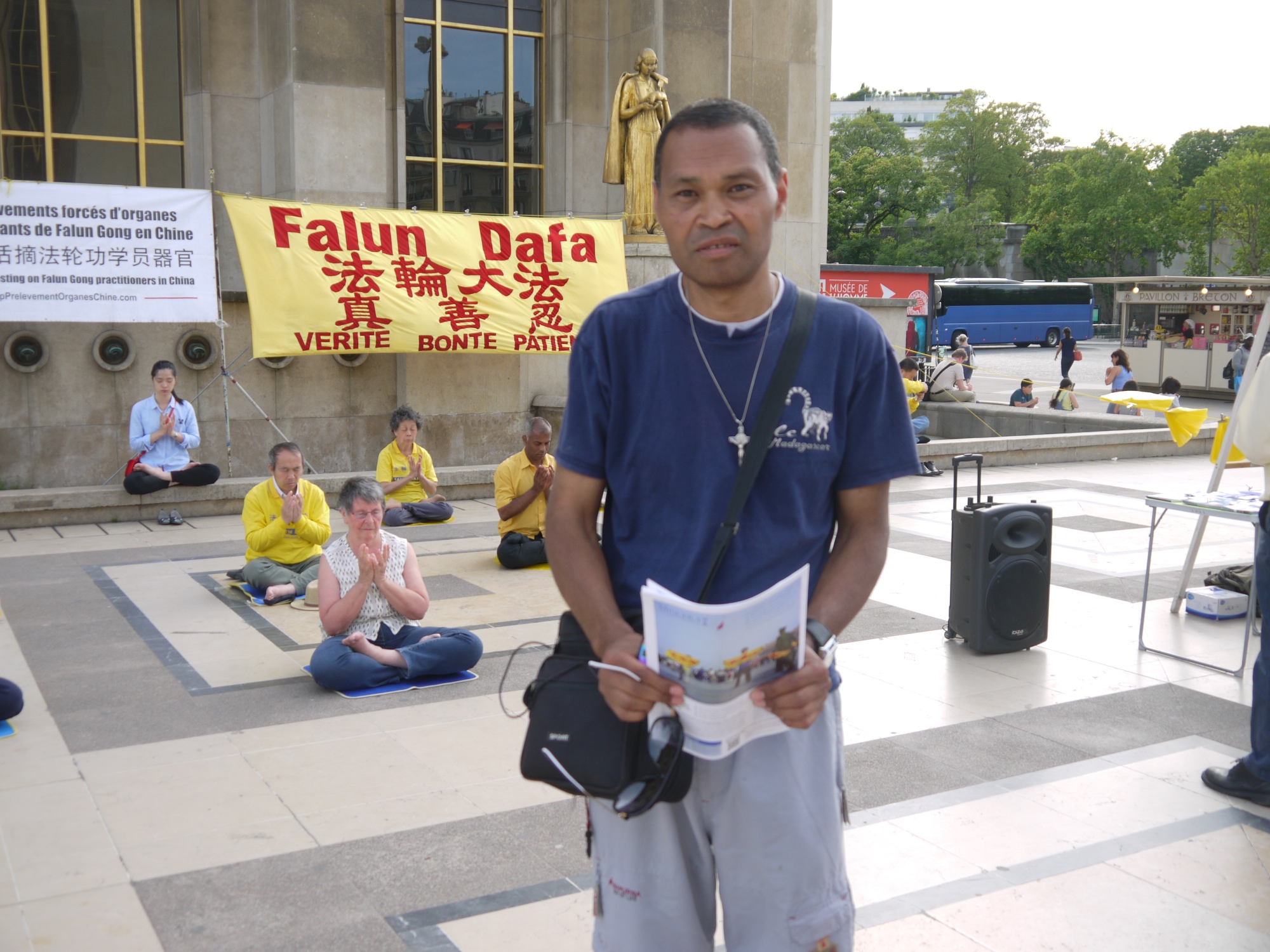 克莱芒(Clement)先生在法国邮政局工作。他表示:“法轮功修炼在中国被禁止,修炼人遭到迫害,我真的反对这种做法,我要支持他们(法轮功学员)。他们是和平的,通过修炼达到身心健康。而对他们的各种迫害方式,甚至强行摘取他们的器官,这是非常骇人听闻的。国际社会应该出来干预此事。我全力支持反迫害,要让中共停止暴行。”