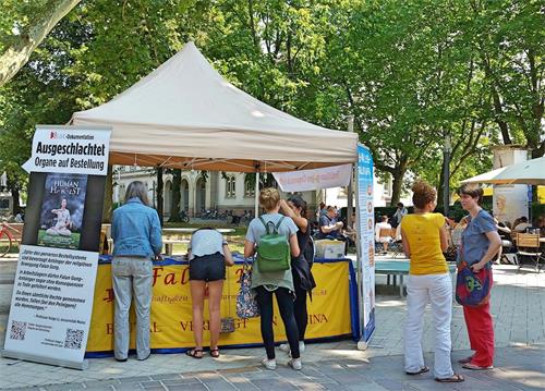 ![]() 图1~4:二零一八年七月七日,德国法轮功学员在西南边陲Lörrach市举办了传播法轮功真相信息日。不少民众驻足了解真相,签名支持制止活摘。 |