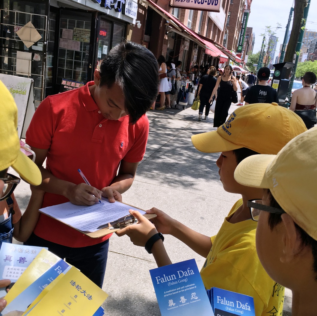 听完孩子们讲法轮功学员在中国大陆的被迫害残酷真相后,西人约翰(John)说:“怎么能把活人的器官都摘取了?这么残忍的事是人做的吗?中共真的太残忍了,(中共)这样迫害法轮功学员真没人性啊。我义不容辞地在(反活摘)征签表上签名了。”他激动得都要流泪了。