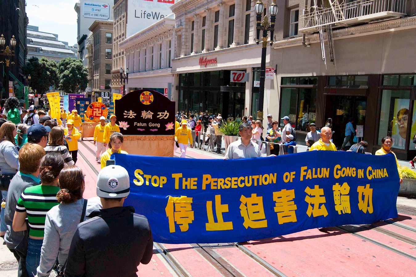 黎桂尔·布朗(Riquel Brown)女士利用周末和家人从洛杉矶到旧金山旅游时巧遇法轮功的游行队伍,被天国乐团所演奏的音乐吸引而驻足观看。布朗表示,“之前在媒体报道上听说过法轮功也知道法轮功在中国受迫害之事。然而,今天亲眼看到法轮功的游行队伍也仔细的读了真相资料后,让我非常的震惊,原来他们 (法轮功学员)在中国受迫害的程度比我想象的还要严重和可怕。你们做得非常好,应该把在中国受迫害的事情让更多人知道,我非常支持!”