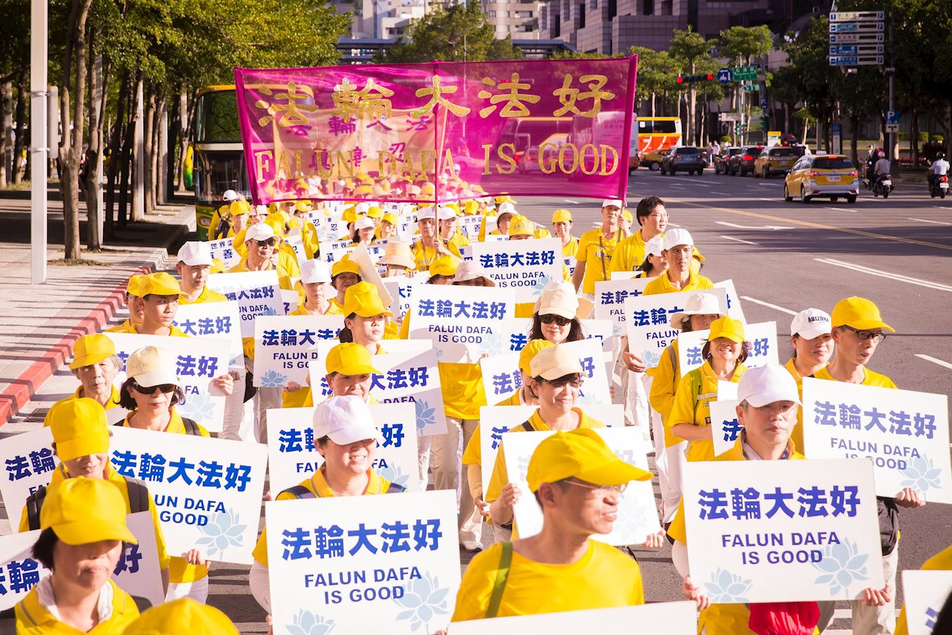 二零一八年七月十四日,在台北市政府前的市民广场,来自大台北、桃竹苗、宜兰花莲二千名的法轮功学员举行游行,呼吁各国认识邪恶的罪行,一起制止中共对法轮功的迫害,法办元凶。