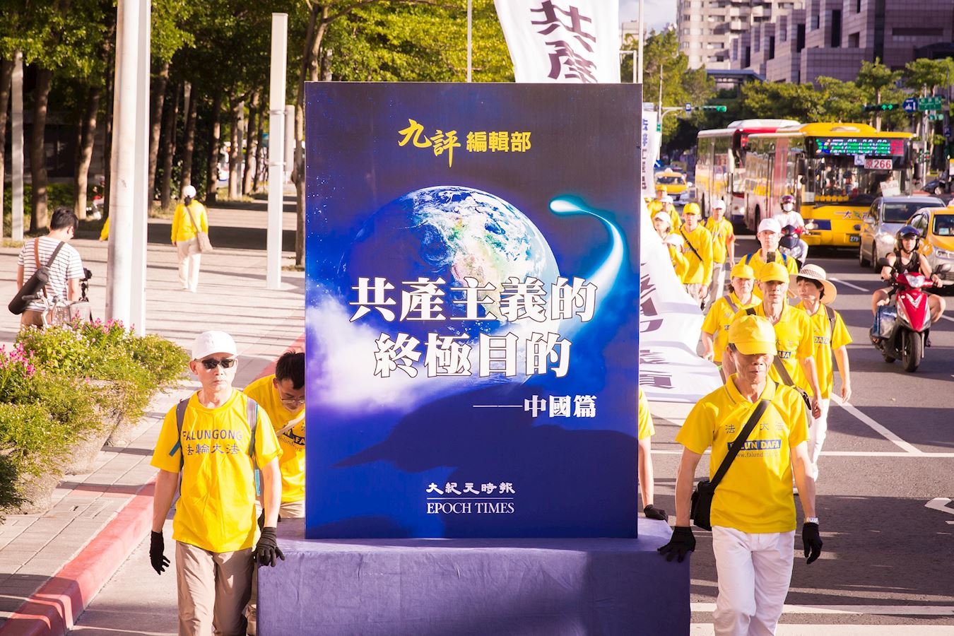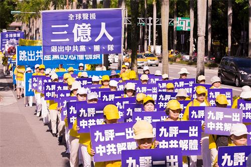 '图1~9:七月十四日下午,超过二千名台湾北部的部份法轮功学员在台北举行七二零反迫害游行,呼吁善良正义的民众,共同制止中共的邪恶迫害。'