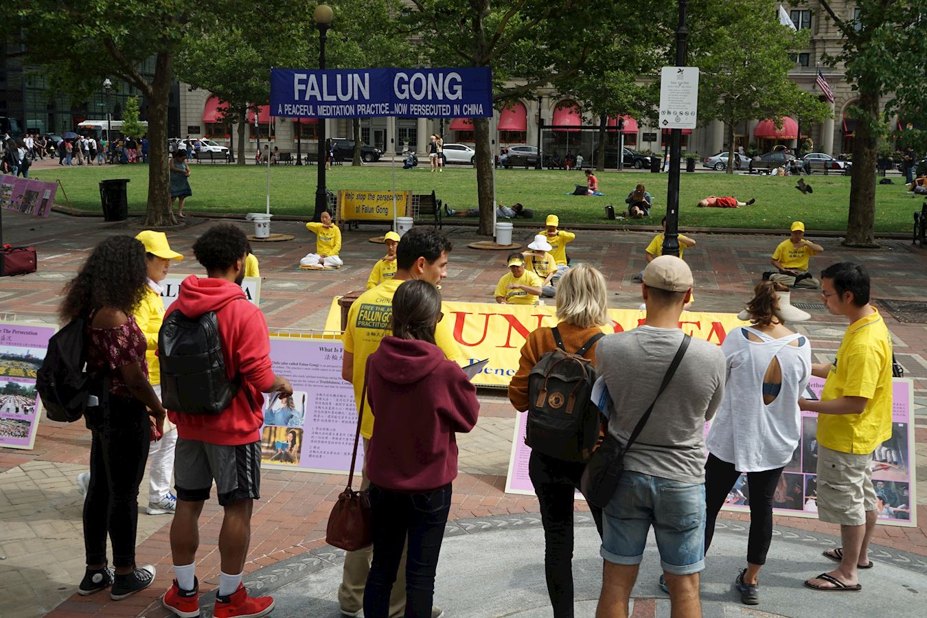 【明慧网二零一八年七月十八日】(明慧记者程德波士顿报道)波士顿法轮功学员于二零一八年七月十四日在波士顿市中心科普利广场举办活动,呼吁社会关注中共对法轮功长达十九年的残酷迫害,共同制止中共暴行。