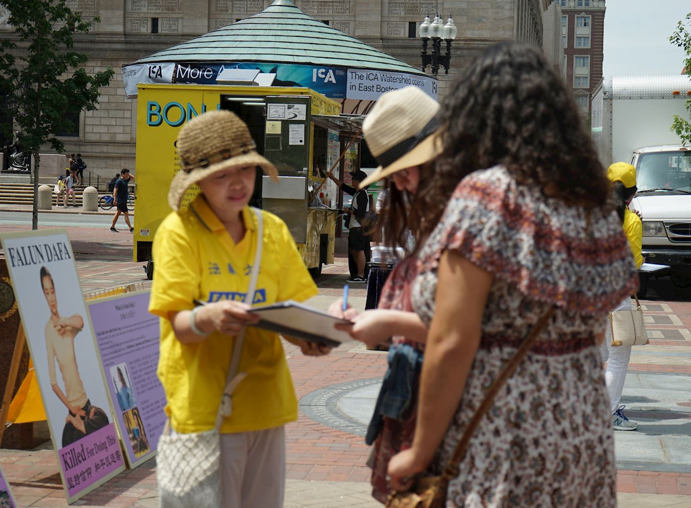图5:波士顿市科普利广场上,民众签名支持法轮功反迫害