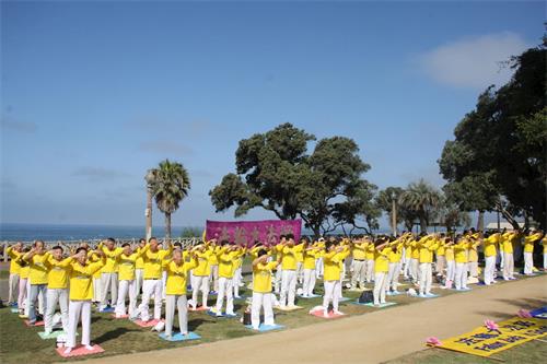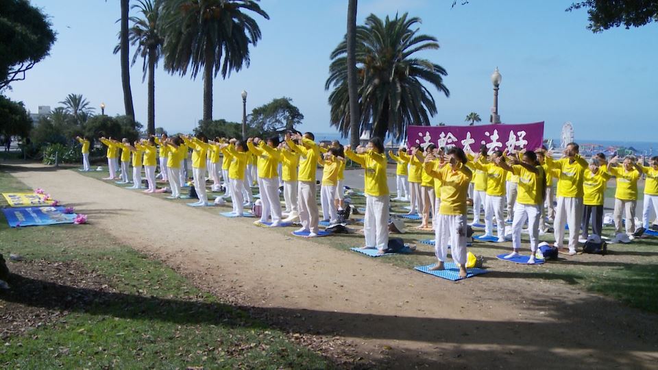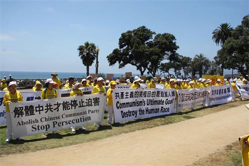 二零一八年七月十五日(周日),洛杉矶部份法轮功学员来到这里,举行了 “七二零”法轮功反迫害十九周年集体炼功、集会和街边打横幅系列活动。法轮功学员想通过举办这些活动,展示法轮大法的美好、揭露迫害的邪恶、呼吁帮助营救还在被非法关押受刑的法轮功学员,呼吁制止迫害、呼吁法办迫害元凶江泽民、呼吁人们在善与恶之间作出正确选择。从一九九二年开始,法轮功自中国大陆传出,迅速使上亿修炼者身心受益。如今已弘传到全球一百多个国家和地区。但是中共江泽民集团自九九年七月二十日开始,对法轮功修炼人进行残酷镇压,到现在十九年了,迫害还在进行。
