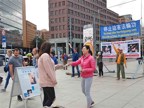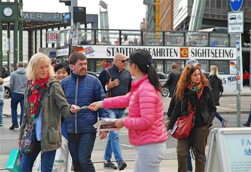 ![]() 图1~3:六月二十三日法轮功学员在柏林波兹坦广场( Potsdamer Platz) 上向游客讲真相。 |