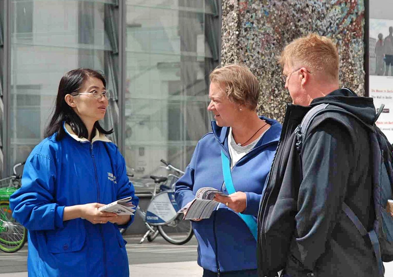 有的市民已经听说过中共对法轮功的迫害,在不来梅和汉堡街会上看到功法演示,进一步了解功法本身;也有的对法轮功比较了解,已在征签活动中签名支持制止迫害,在当天活动中询问法轮功在中国大陆的现状如何,迫害是否有减轻,海外民众的支持有没有产生作用等等;还有的对家里男孩子的教育深感头痛,请教法轮功学员如何在有烦恼的时候还能够打坐入静。他们在与学员深度交谈后,都表示对“真善忍”的认同和对学员的支持。