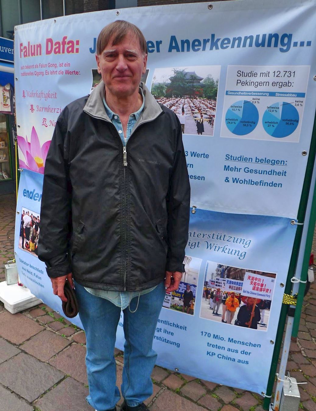 六十六岁的雷贝格(Ruediger-Wolf Rehberg) 退休前是数据处理商,他说:“这些炼功人看上去非常平和,却被掌权者视作威胁。”学员说明中共迫害的实质是惧怕“真善忍”的原则时,他马上反对,认为:“这(真善忍)是一个好的理念,每个群体的人都应该为有这样的人高兴,应该提倡他们的精神,甚至用金钱鼓励人们(按真善忍的原则)这样做。”