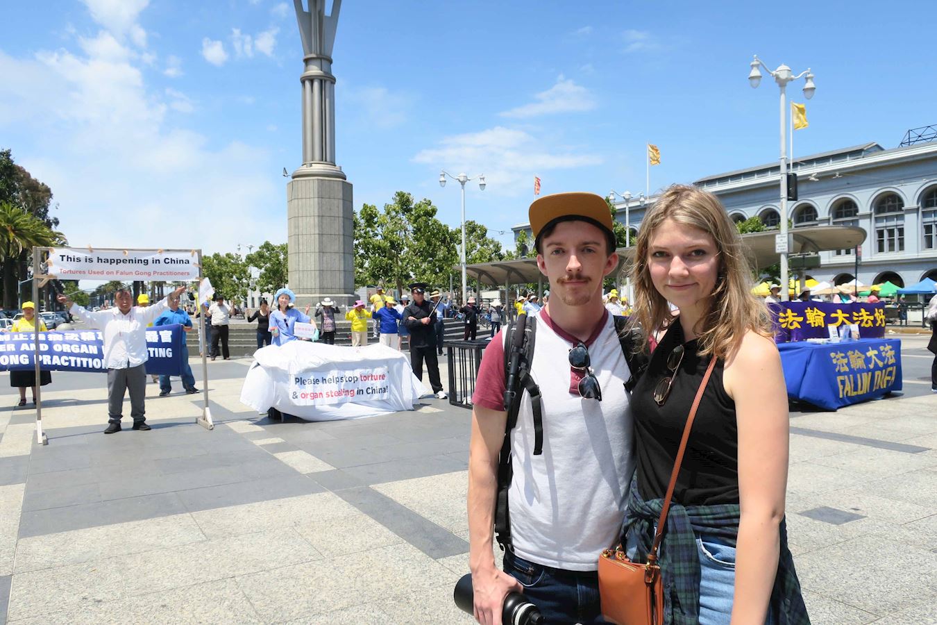菲德表示,“其实我们经过这里两次,有不同的感受,第一次看到活摘法轮功学员器官的酷刑展,我感到非常震惊,让我无法用语言来表达我的心情,太恐怖了!可是,当我第二次再回到这里时,看到法轮功学员在炼功,那种祥和的气氛深深地吸引着我,让我想了解这群善良人到底在中国发生什么事。”