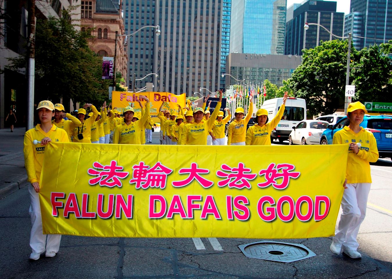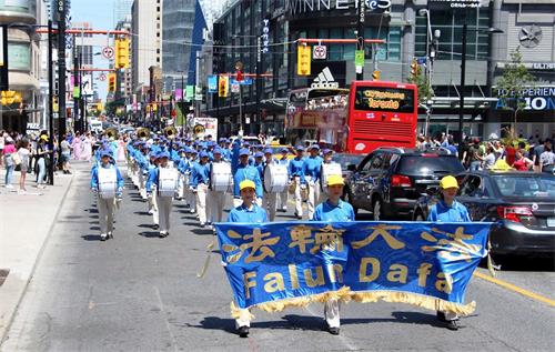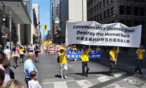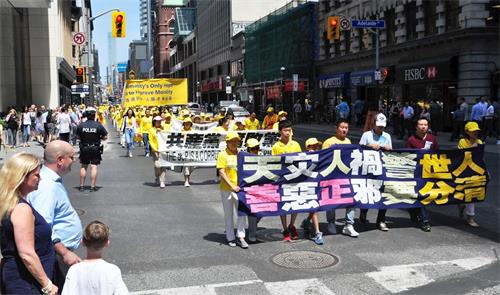 '图1~13:13:二零一八年七月二十日,多伦多法轮功学员在市中心举行“七二零”十九周年反迫害大游行。'