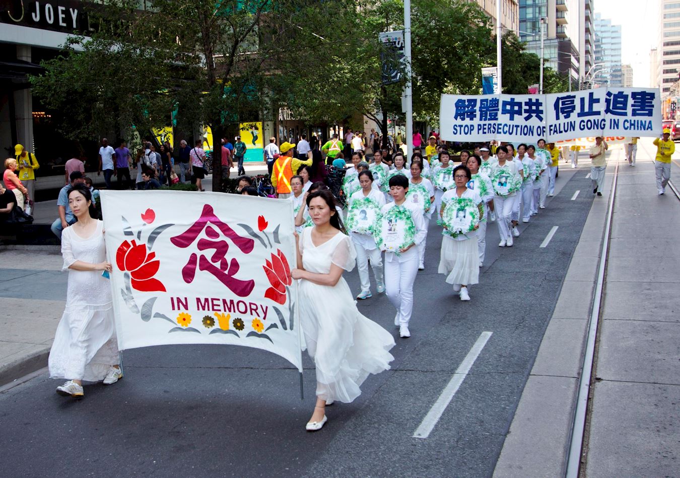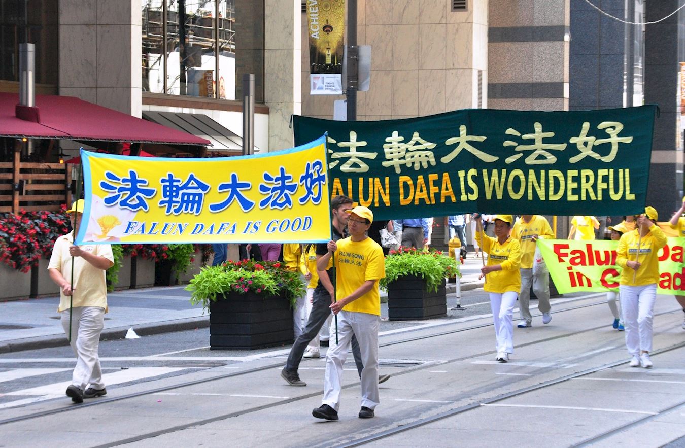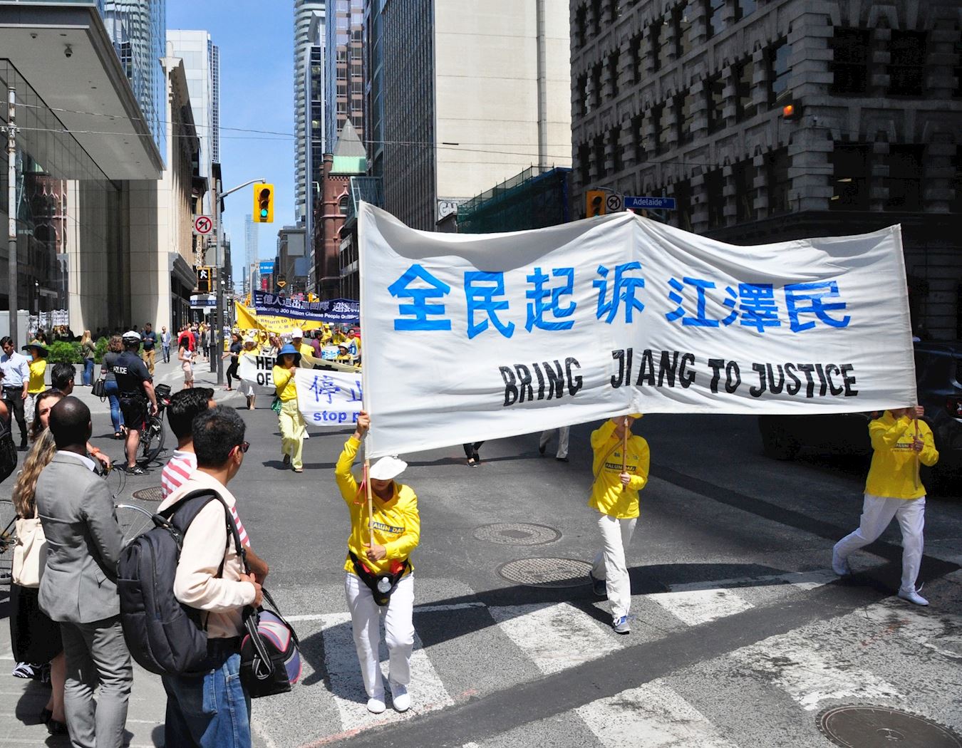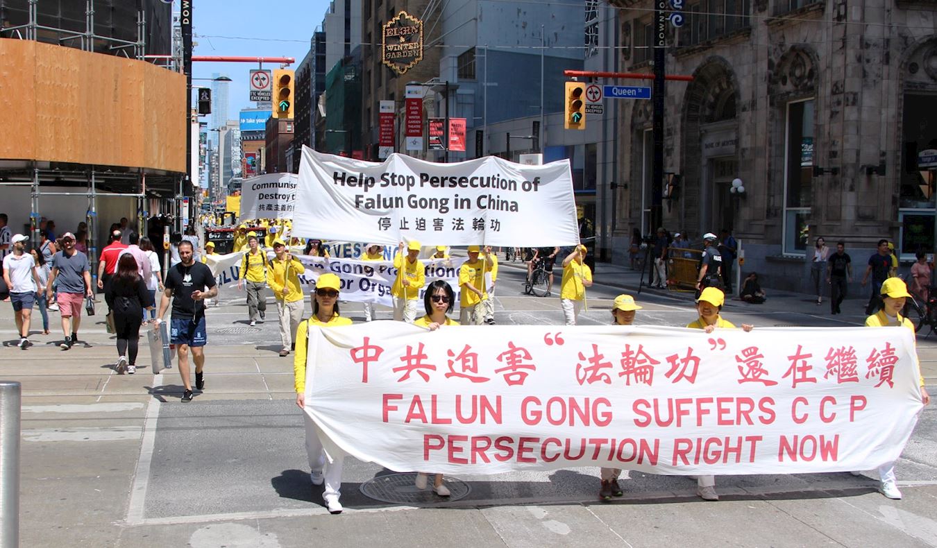 图1~13:13:二零一八年七月二十日,多伦多法轮功学员在市中心举行“七二零”十九周年反迫害大游行。