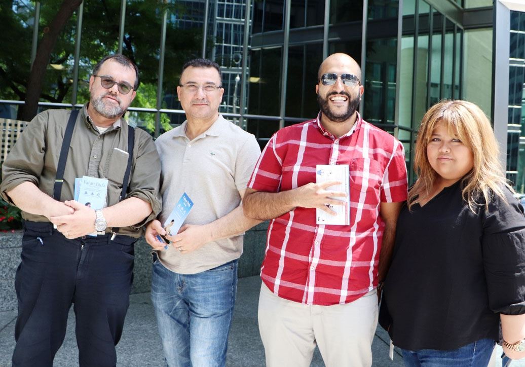 在多伦多大学就读博士的李先生听完法轮功学员讲三退的意义后,说:“我之前都听说过法轮功的真相,我也一直没做三退,今天就退了吧。非常感谢法轮功。”
