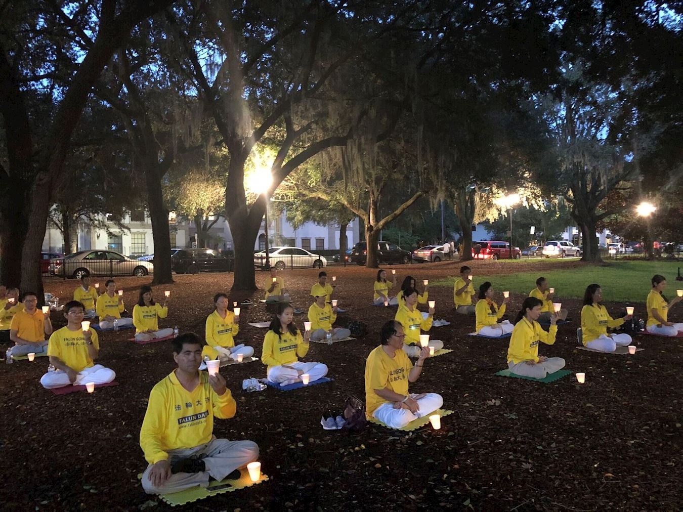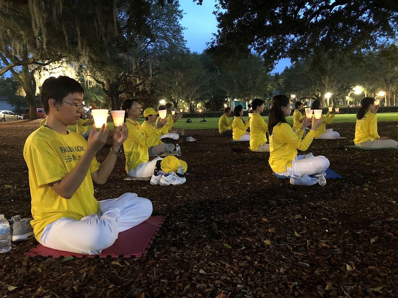 一九九九年七月二十日,中共邪党和江泽民集团发动对遵循真、善、忍原则的法轮功修炼者的残酷迫害,从那以后,法轮功学员在全球范围的反迫害至今已走过了十九年。每年的这个时候,佛罗里达法轮功学员都在奥兰多市中心的伊奥拉湖公园举行烛光悼念,呼吁社会各界关注发生在中国的对法轮功持续十九年的迫害,共同“解体中共、制止迫害”。