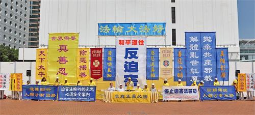 至今持续十九年了,中共对上亿信仰“真、善、忍”的法轮功修炼者的迫害。七月二十二日周日,不畏酷热天气,香港法轮功学员上午十时在中环爱丁堡广场举行反迫害集会,获港、台、大陆和海外多位政要名人发言声援。