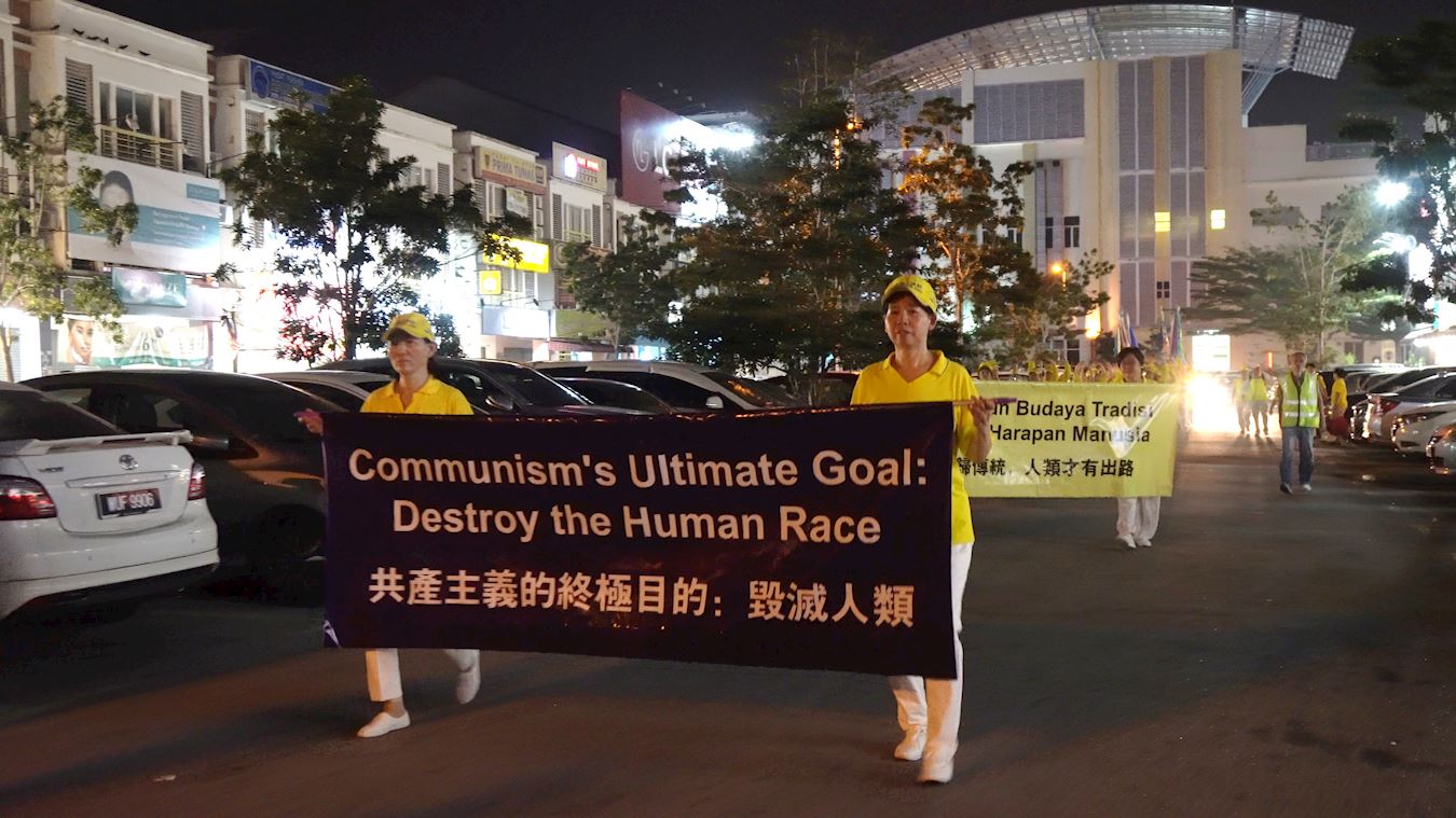 7月14日晚,法轮功学员在雪兰莪州Setia Alam举行反迫害游行,让更多的民众了解真相,帮助制止这场持续了十九年的残酷迫害。