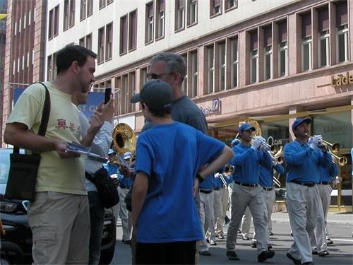 在游行的同时,学员们还在柏林市中心设置了两个真相点。与以往真相点不同的是,这段时间来真相点的人很多都在看游行时读过有关法轮功及中共迫害的传单了。他们有些人希望能在真相点更详尽地了解中共对法轮功的迫害,有些人想知道怎么能开始学炼法轮功,也有很多人特地来真相点向学员问好,并表示支持法轮功学员们和平反迫害的活动。