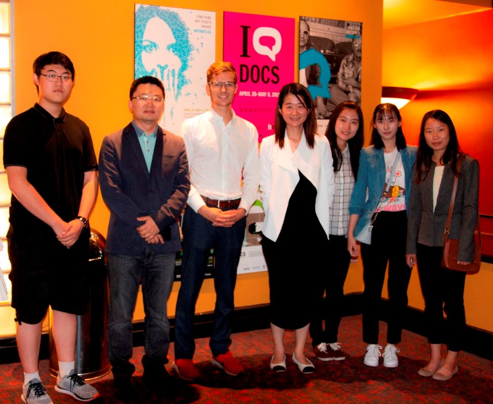 图3:加拿大安省议员山姆·奥斯特霍夫(Sam Oosterhoff)与多伦多青年法轮功学员合影,他表示通过来参加电影公映表明他的支持。(左二是导演李云翔,左三是议员山姆·奥斯特霍夫)