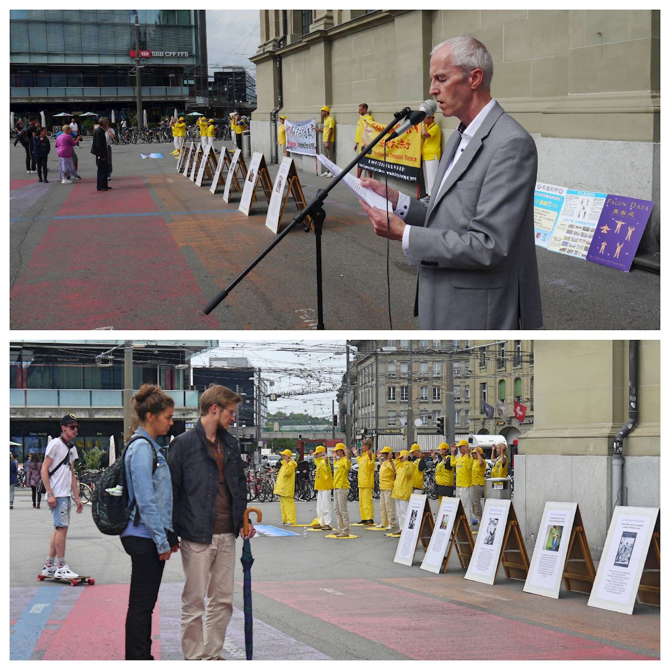 【明慧网二零一八年七月二十八日】在法轮功学员反迫害十九周年之际,二零一八年七月二十一日,瑞士法轮功学员在首都伯尔尼(Bern)举办系列讲真相活动,呼吁制止中共迫害法轮功。