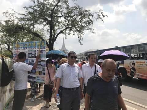 ![]() 图:魏敏(打真相展板者)在泰国景点讲真相 |