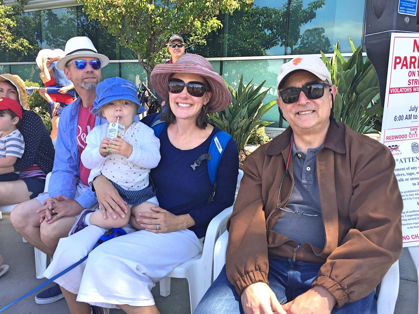 ![]() 图18:每年都来观看游行的海德(Heather)带着二岁的女儿与朋友盖瑞(Gary )一同观看独立日游行。 |