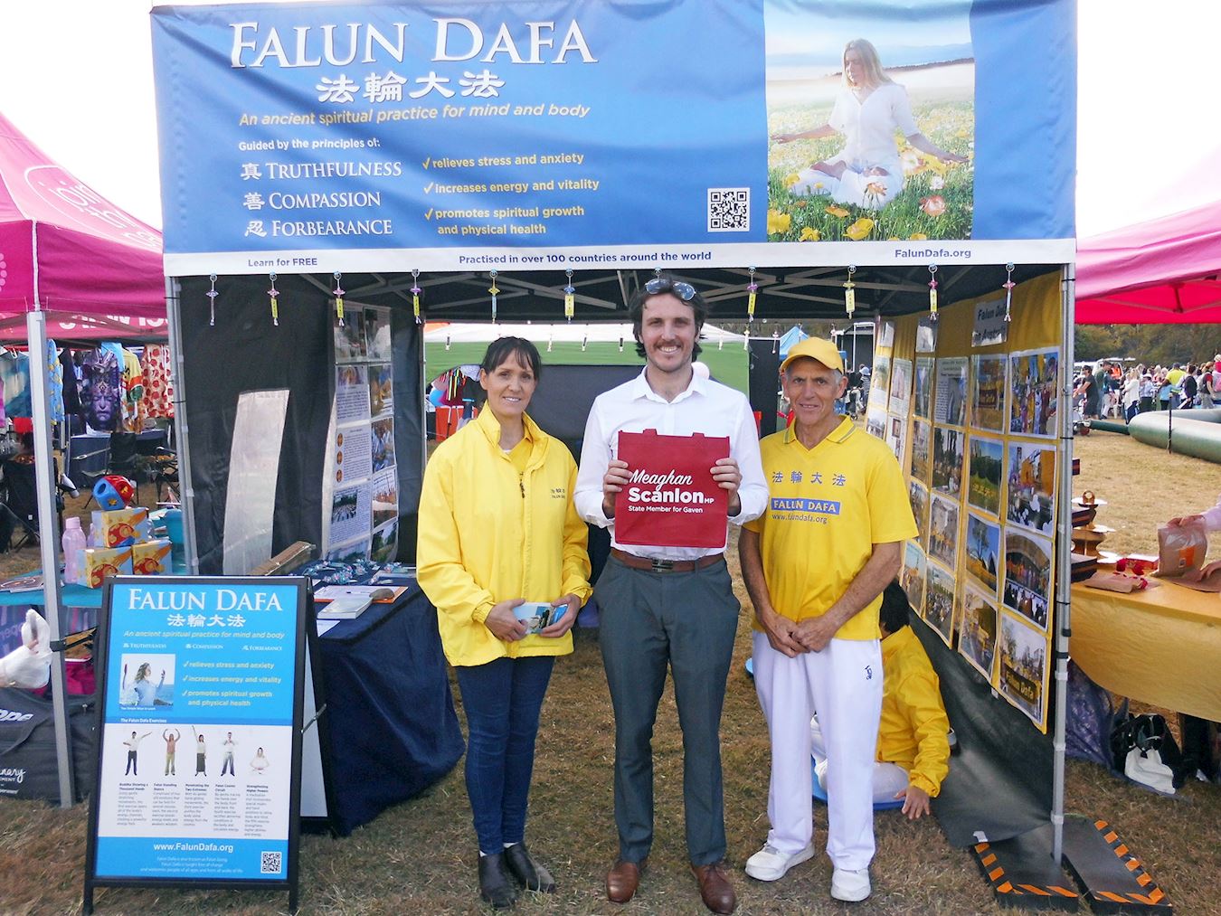 很多光顾法轮大法摊位的访客以前都听说过法轮大法,Gaven选区的现任昆省议员米根·斯坎伦(Meaghan Scanlon)就是其中之一。