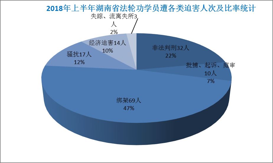 ![]() 图2:2018年上半年湖南省法轮功学员遭各类迫害人次及比率统计 |