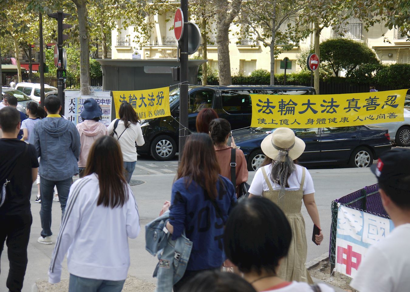 法轮功学员君女士每天都去艾菲尔铁塔下讲真相。一次,君女士给一群大陆游客讲真相,他们不听,还攻击君女士,什么“反党”、“叛国”都上来了。这时从人群里站出一个人,高举着双拳,大声喊:“法轮大法好!真善忍好!”一连喊了三次,场景非常震撼,那群大陆游客都停下来,不对抗君女士了。