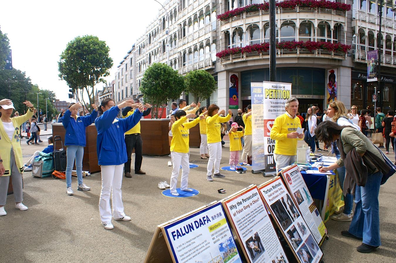![]() 图1~2:二零一八年八月十八日, 爱尔兰部份法轮功学员聚集在都柏林市中心的格拉夫顿大街集体炼功,传播大法的美好,揭露中共残酷迫害法轮功的恶行。 |