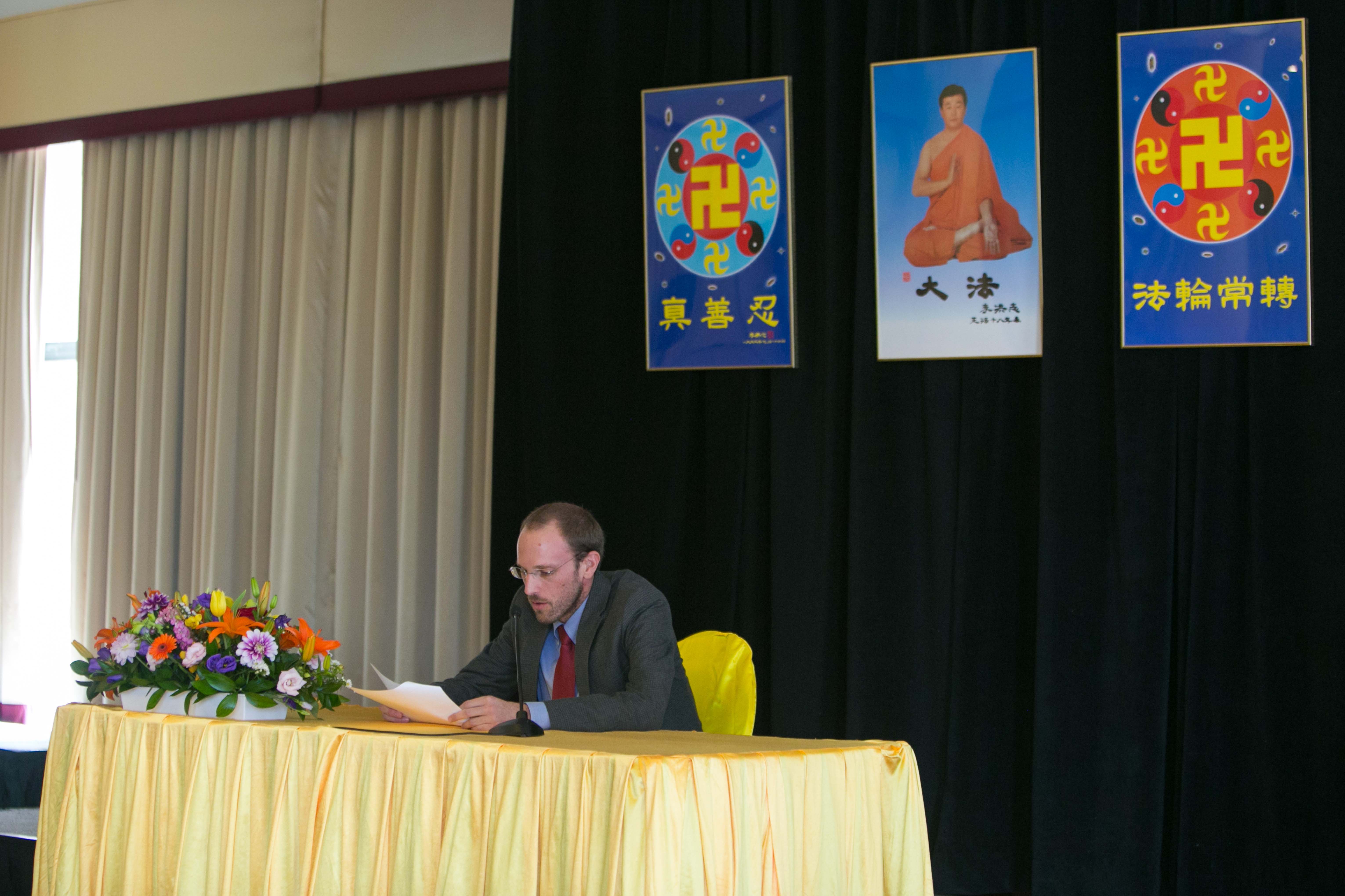 斯考特来自纽约,他讲述自己花了近十年的时间才能用中文流利的读《转法轮》。在这个过程中,他去掉了自己求名和想在同修面前显示的执著心。他感到,读中文版的《转法轮》让他更好的理解法,明白了很多以前读英文翻译时没有悟到的法理。