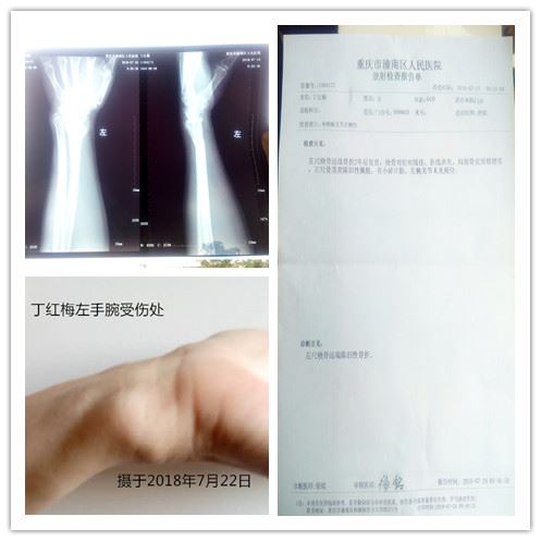 7、手腕被迫害严重错位:2016年8月2日早晨,我在没有防备的情况下,被包夹张莹一掌推到洗漱室的墙上被弹回来倒退两步,致使我左手腕严重错位骨折(至今已经两年过去我的手腕还鼓起一个大包)。晚上包夹端两盆水泼在我身上,还讥笑我“疯婆子,贱人,莫装”。