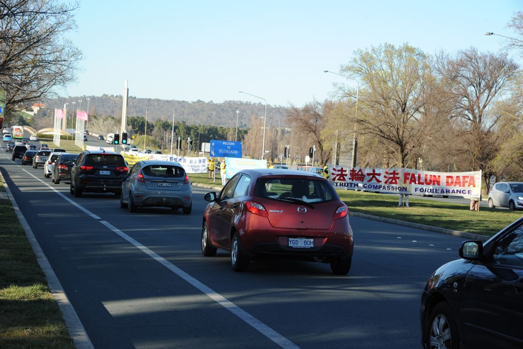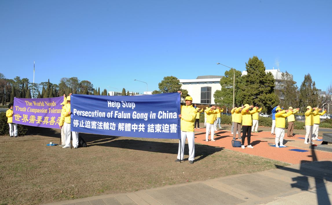 法轮功学员在市中心通往国会山的各主要街道展示真相横幅、集体炼功,在澳洲联邦国会大厦前草坪举行大型的集体炼功和集会,在市中心繁华商业街设立真相点,学员们还造访了首都主要的工商、法律、非政府组织机构等,讲述法轮功反中共迫害的真相,并通过获奖纪录片《活摘》的放映和讨论,揭露在悉尼举办的人体展涉及的中共活摘器官黑幕。