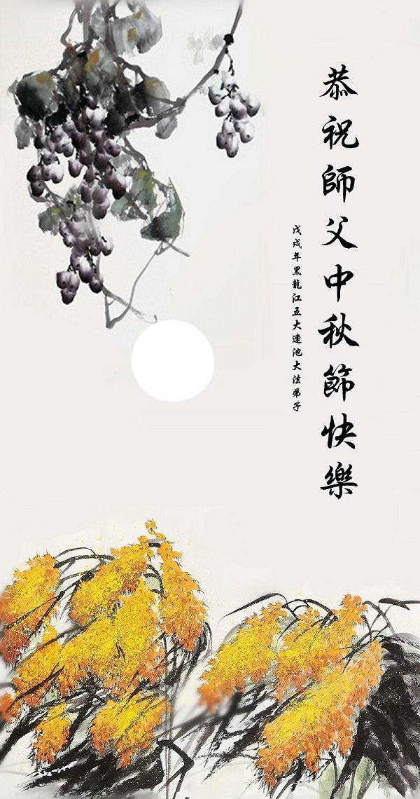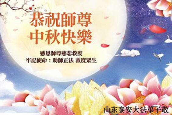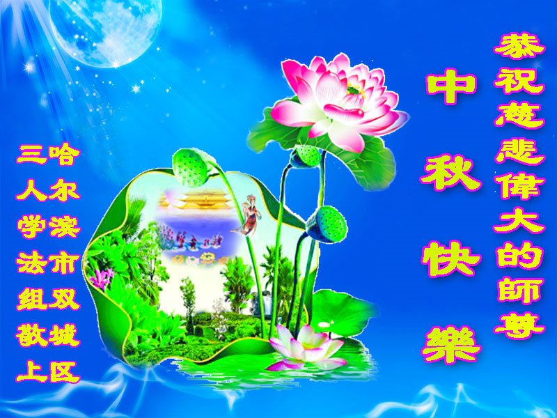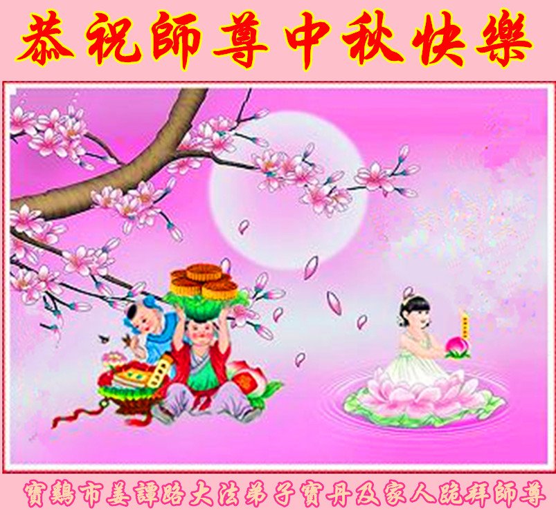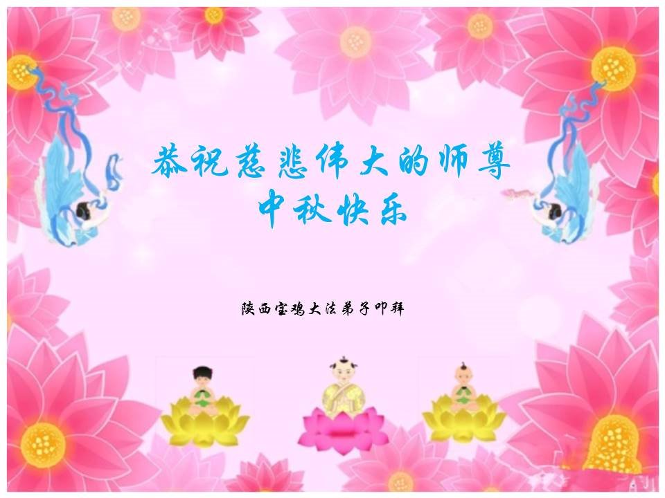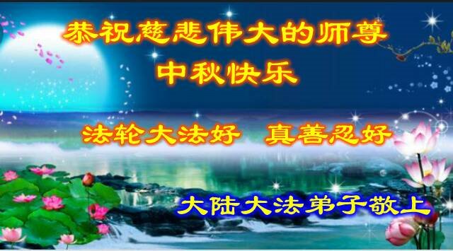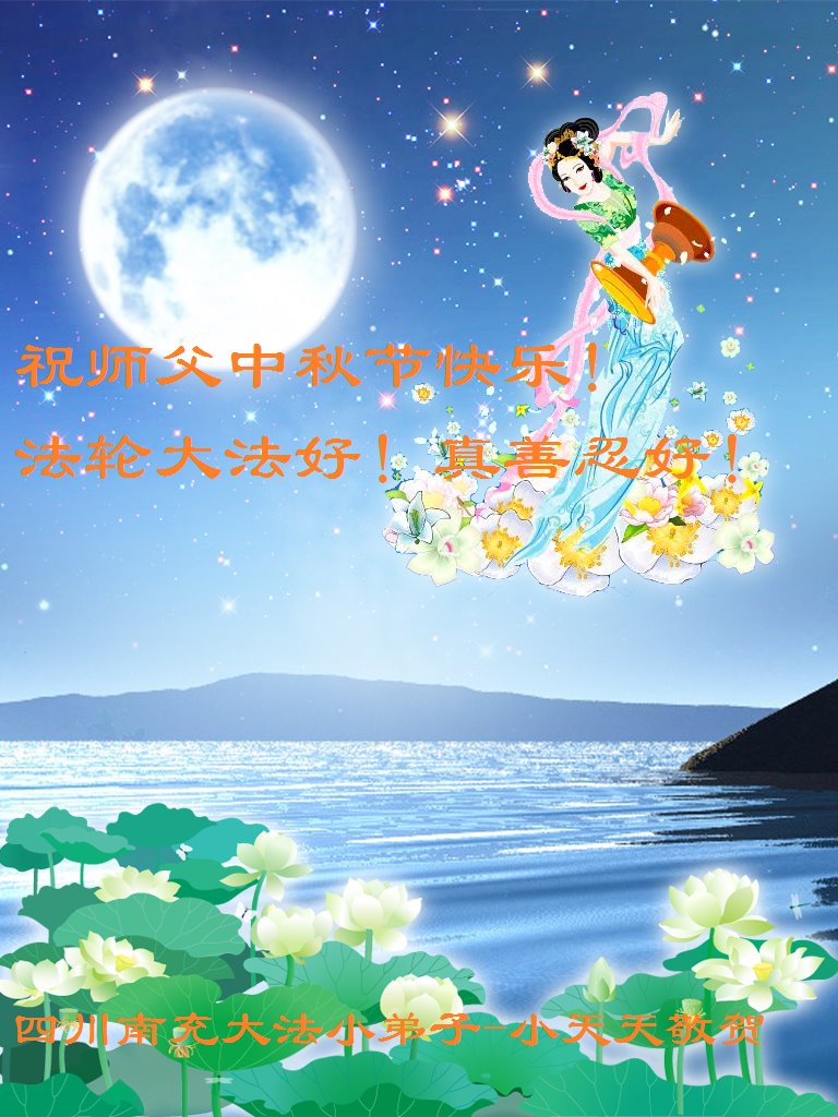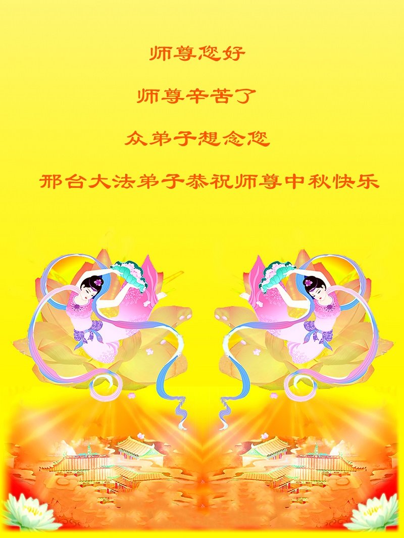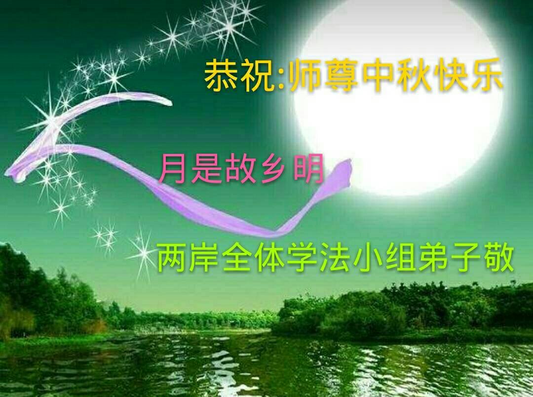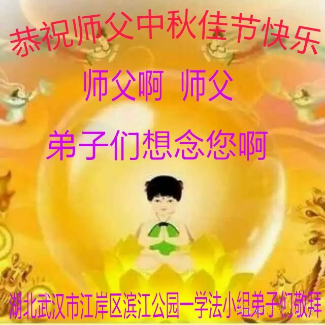 师尊您好!师尊辛苦了!在这中秋佳节来临之际,弟子非常想念师尊,弟子心怀无限的感恩和崇敬恭祝师尊中秋快乐!在弟子修炼路上每前進一步,都浸透了师尊的无量慈悲和巨大付出,弟子叩谢师尊佛恩浩荡! 我们要学好法、学懂法,修好自己,在提高心性上多下功夫,认真做好三件事,这是我们的责任,我们一定会做得更好,因为我们有伟大的师父,有伟大的法!