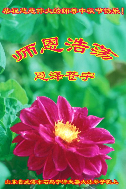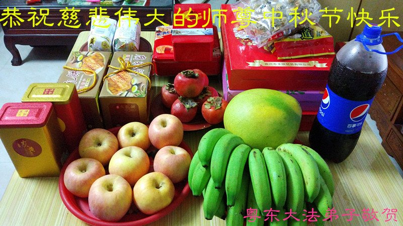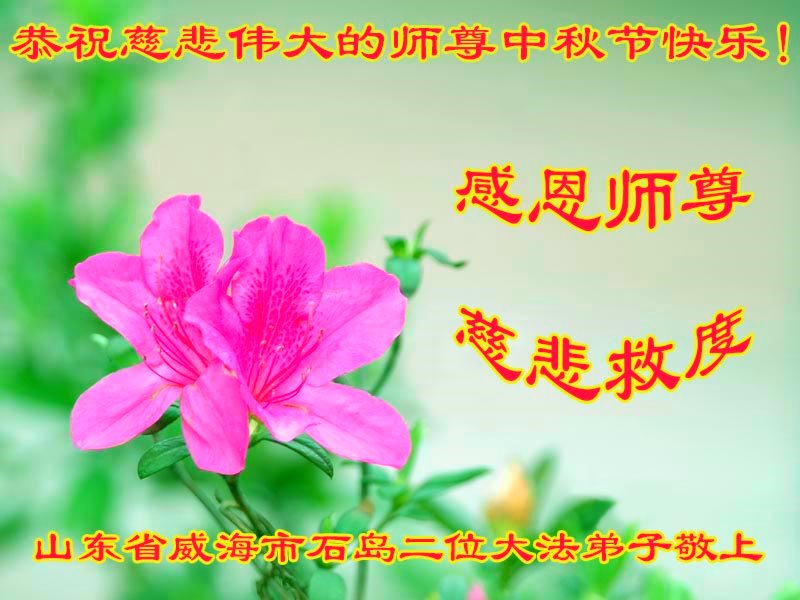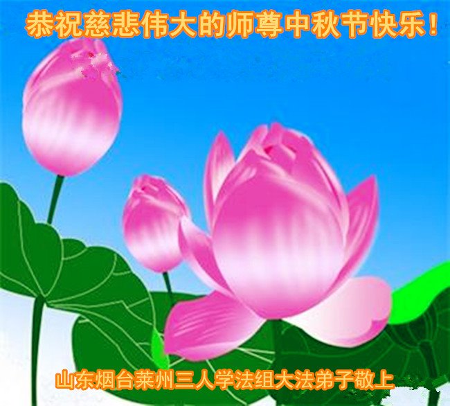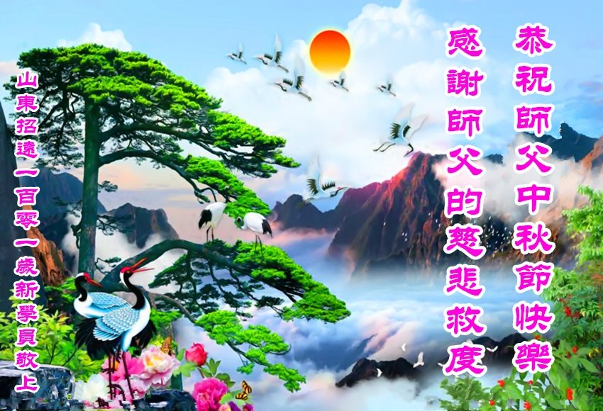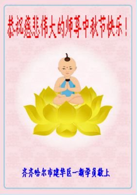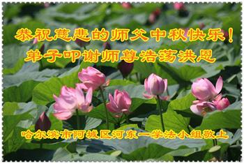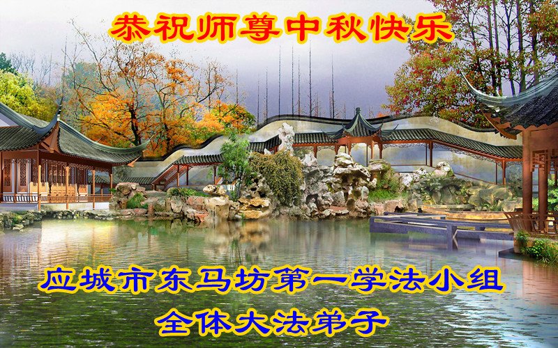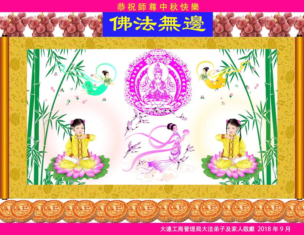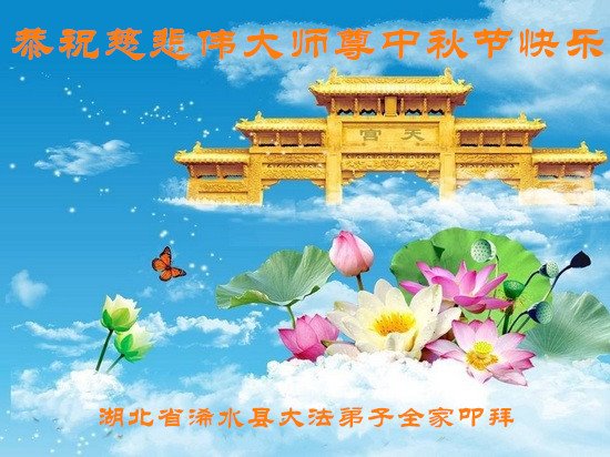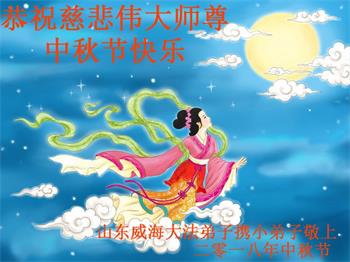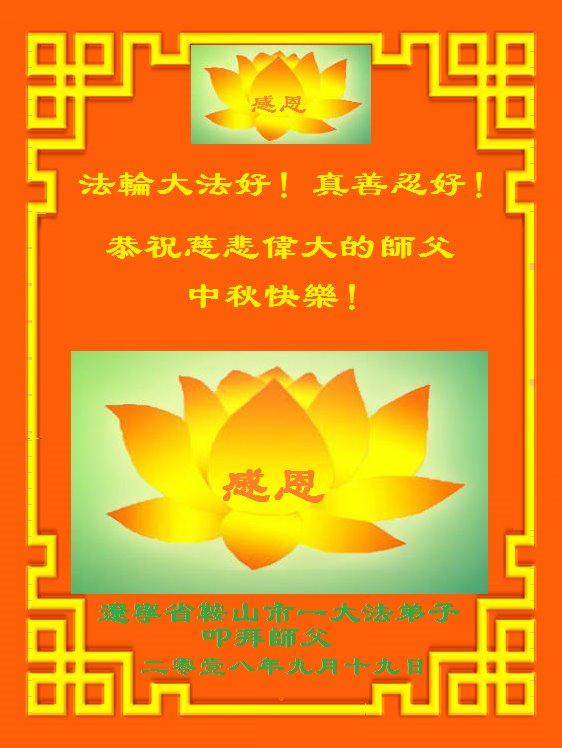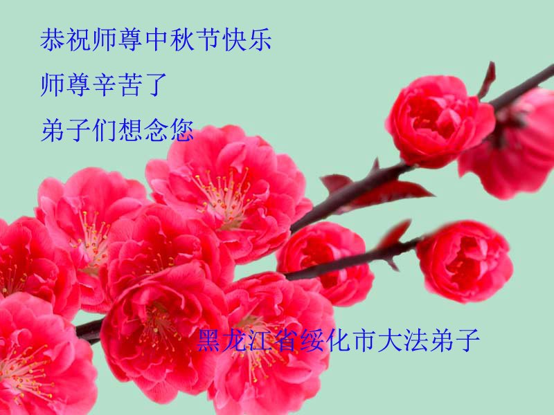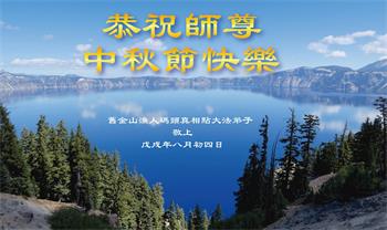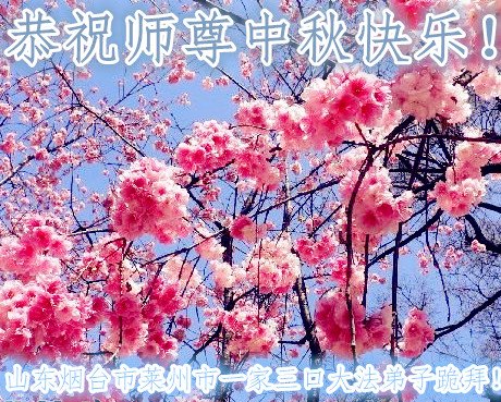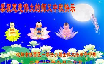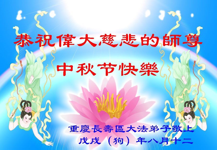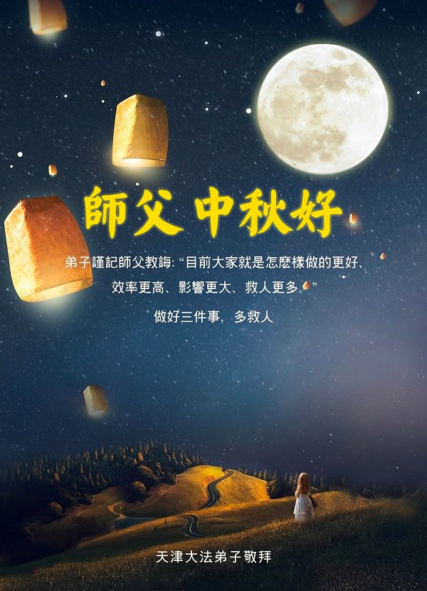 师尊您好!师尊辛苦了!在这中秋佳节来临之际,弟子非常想念师尊,弟子心怀无限的感恩和崇敬恭祝师尊中秋快乐!在弟子修炼路上每前進一步,都浸透了师尊的无量慈悲和巨大付出,弟子叩谢师尊佛恩浩荡! 我们要学好法、学懂法,修好自己,在提高心性上多下功夫,认真做好三件事,这是我们的责任,我们一定会做得更好,因为我们有伟大的师父,有伟大的法!