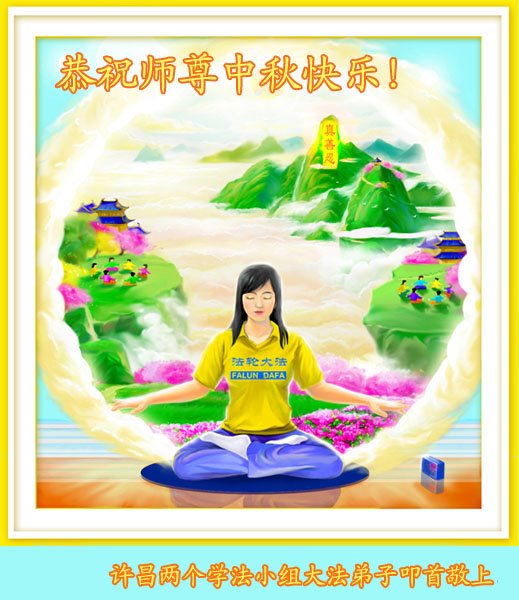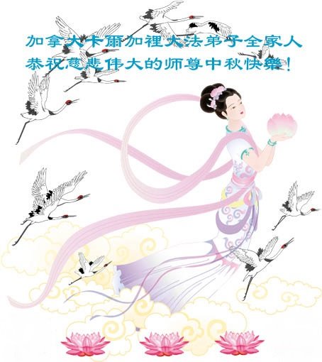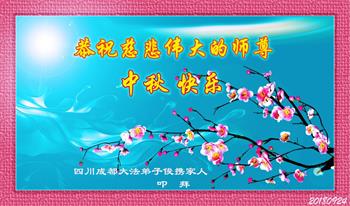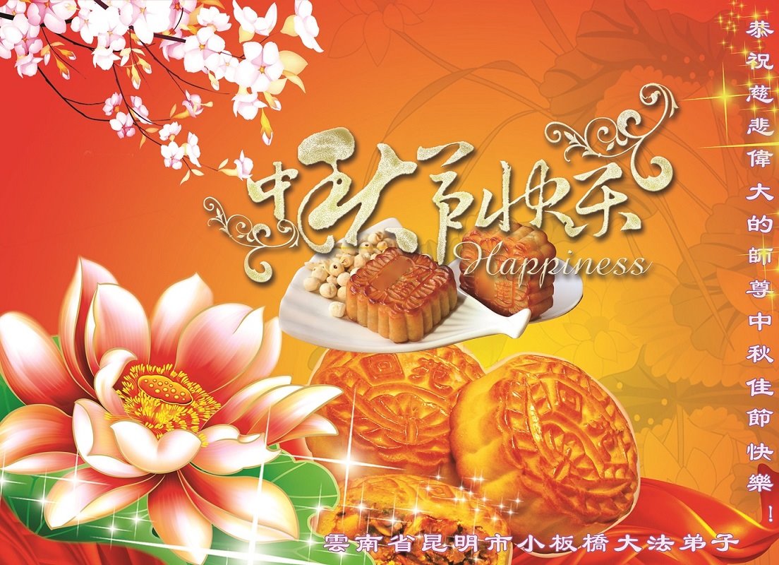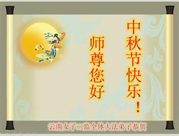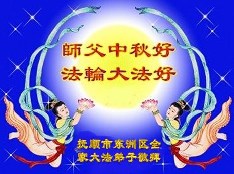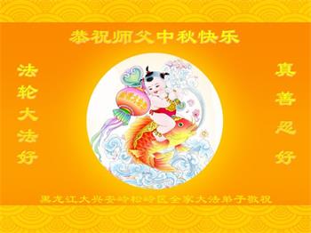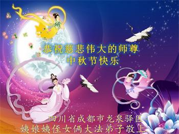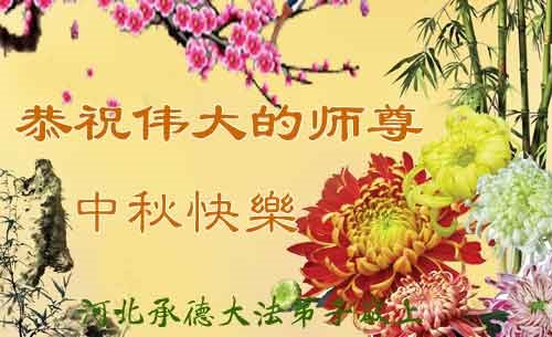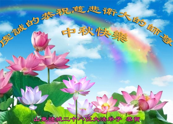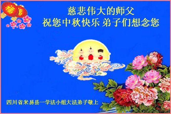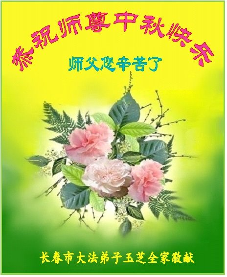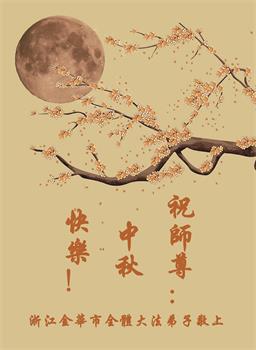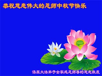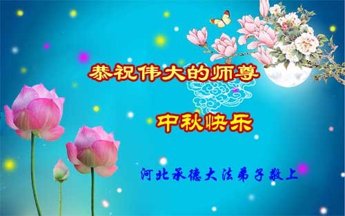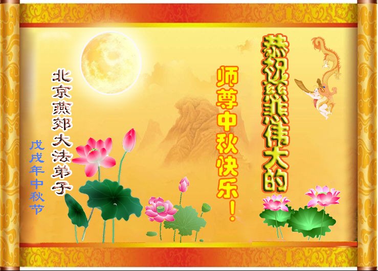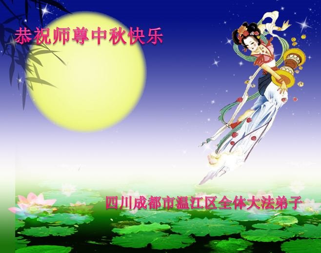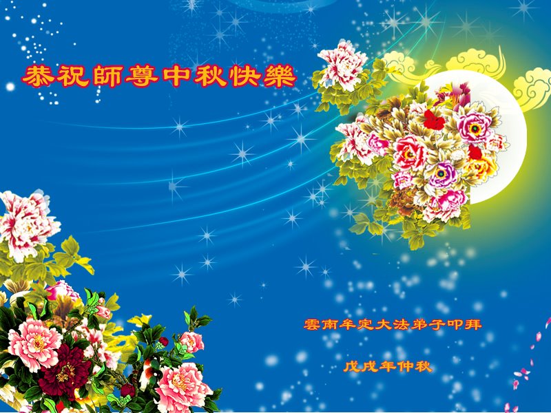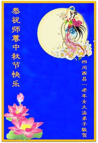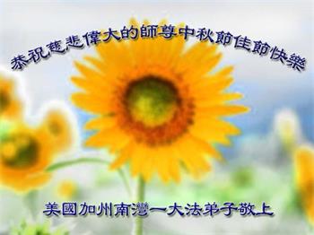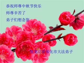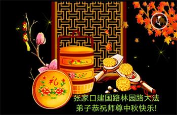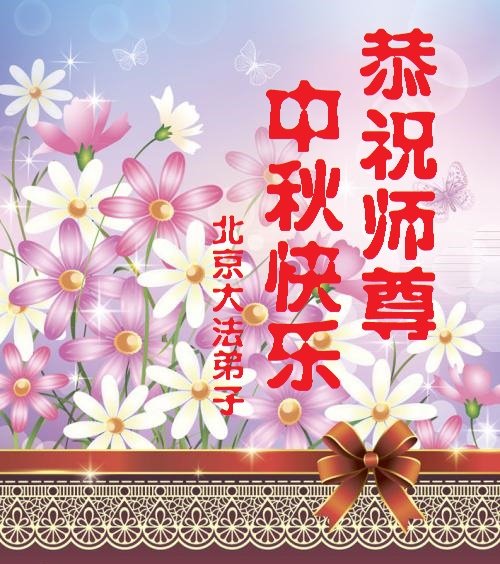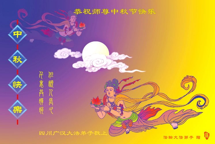 中秋佳节到来了,弟子恭贺师父佳节快乐!中秋是圆满的日子,弟子深深知道师父给予我们的法轮大法,能使我们修炼圆满。一些同修在大法中修炼勇猛精進,修成了,成为真正的大法徒,他们无愧师父的慈悲救度, 无愧于他们世界众生的期盼,他们的生命已经走向永恒。弟子惭愧,在目前师父的巨大承受下延长的修炼时间里,还不知道很珍惜,至今还有很多执着没有放下,没有修去,弟子希望能在今后的修炼中严格按法轮大法的要求去修炼,走向圆满。弟子无限感激师父的洪大慈悲救度之恩,在中秋佳节叩谢师父!,弟子给师父深深的敬合十礼!