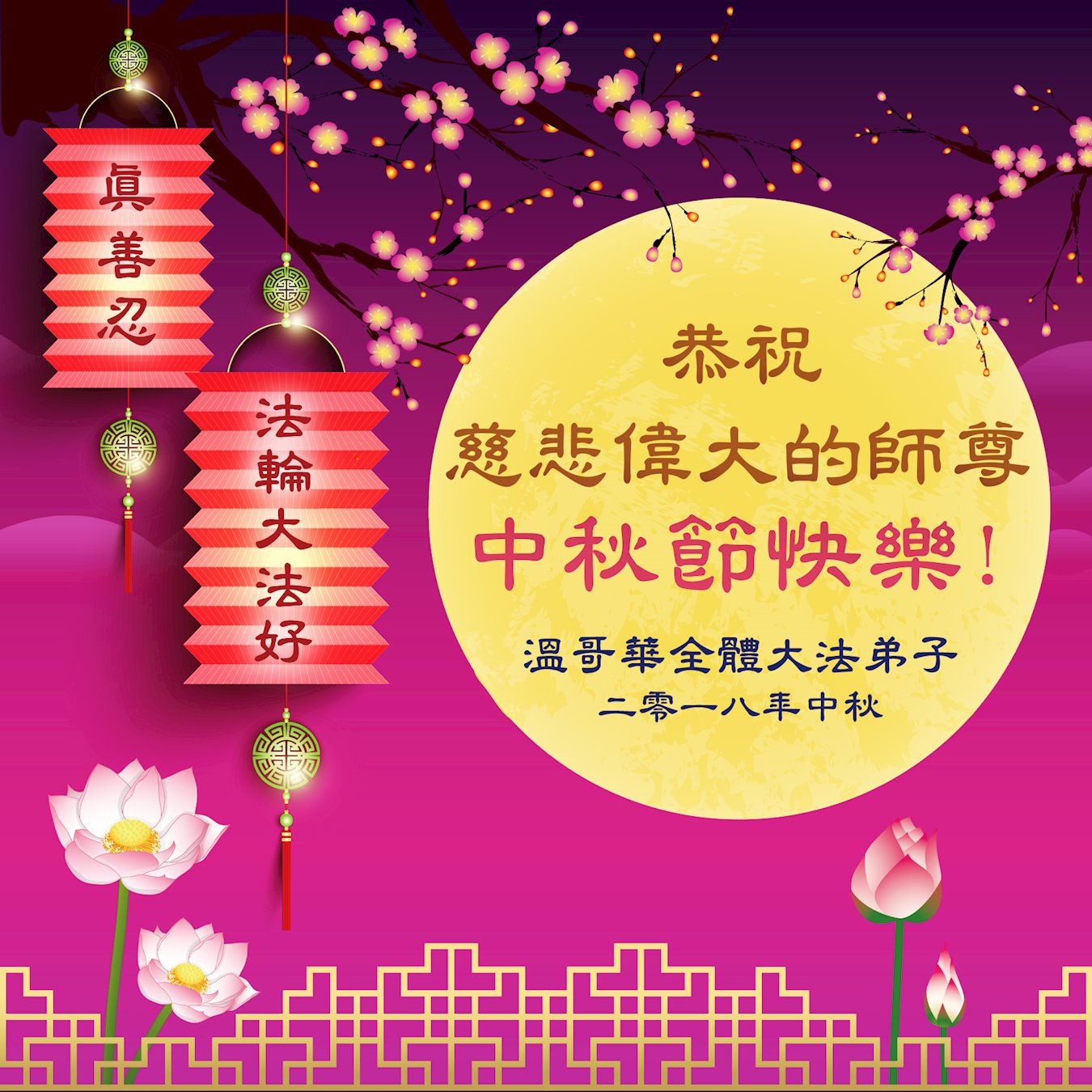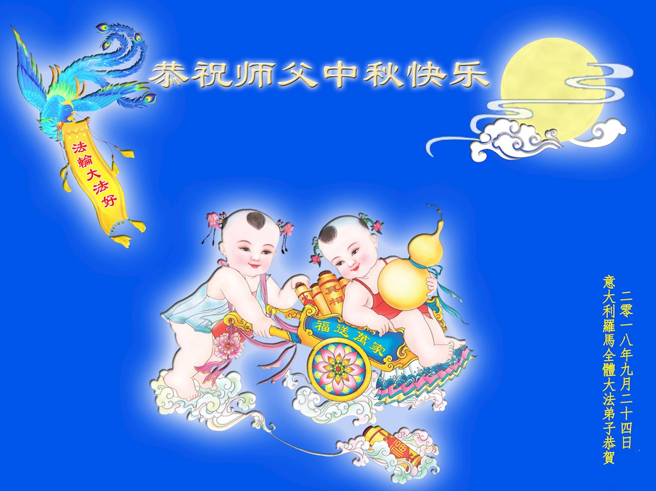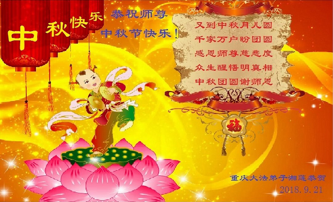 <英文版: http://en.minghui.org/html/articles/2018/9/24/172263.html>美国17州大法弟子恭祝师尊中秋快乐
