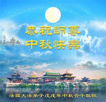 一年一度的中秋佳节来临了!法国大法弟子在这个敬谢神恩的传统节日里向师尊问好!恭祝慈悲伟大的师父中秋快乐!无尽感恩师父的慈悲苦度!