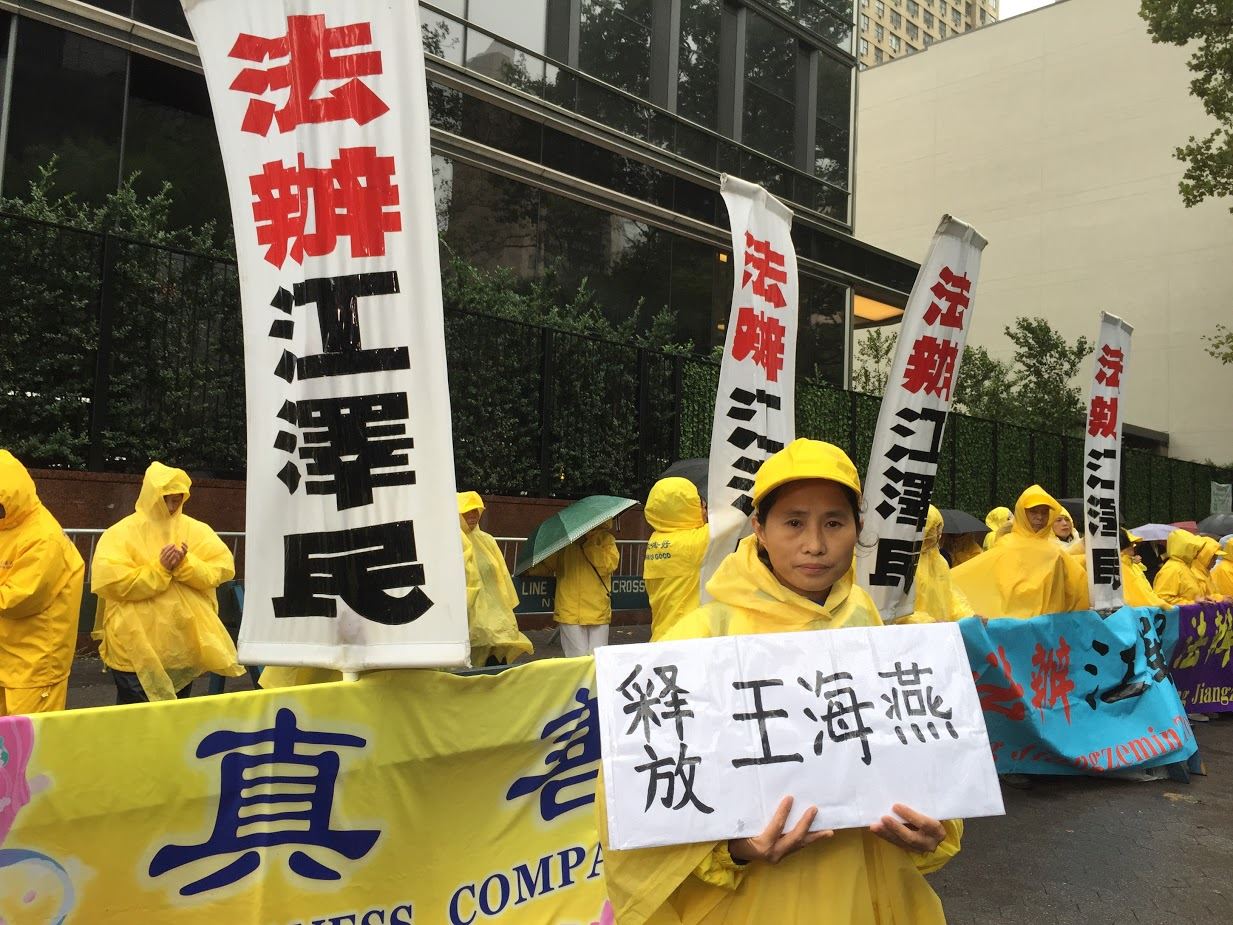 全球退党服务中心主席易蓉表示:“每年联合国开会的时候,我们都来此表达诉求,让各国的领导人看到我们法轮功学员在过去十几年间遭受的迫害,希望国际社会帮助制止迫害。”
