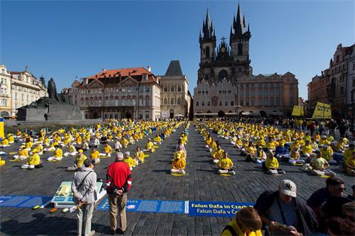 布拉格是一座欧洲历史名城,也是著名的旅游城市,景色错落有致,环境宜人。这里的人们心地善良,质朴真诚。这一天,来自世界各地的游人和捷克民众,看到法轮功学员祥和的炼功打坐,非常受震撼。了解到中共对修炼“真、善、忍”的法轮功学员残酷迫害,甚至强行摘取他们的器官来牟取暴利,他们都感到无比震惊。人们纷纷在反迫害征签表上签字,希望帮助法轮功学员,早日结束这场迫害。