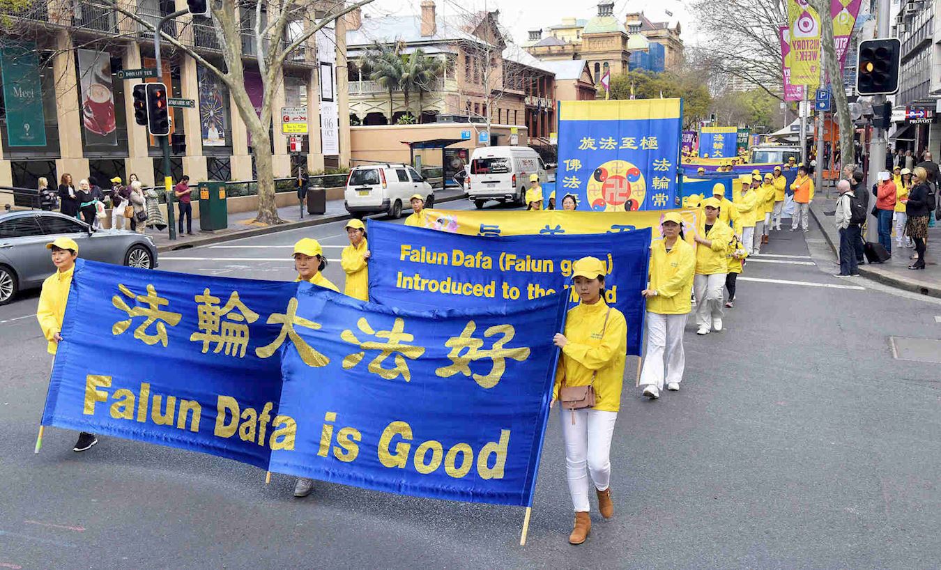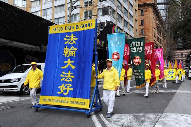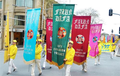 活动主办方李先生介绍:“反迫害是一九九九年中共对法轮功开始残酷迫害开始后,法轮功学员的一个基本的诉求。这次游行队伍里还有一个信息要传递给民众,就是大纪元的两部新书:一个是《共产主义的终极目的》,一个是《魔鬼在统治着我们的世界》。以横幅的形式将这两本书的标题展示给澳洲主流社会的人士。”