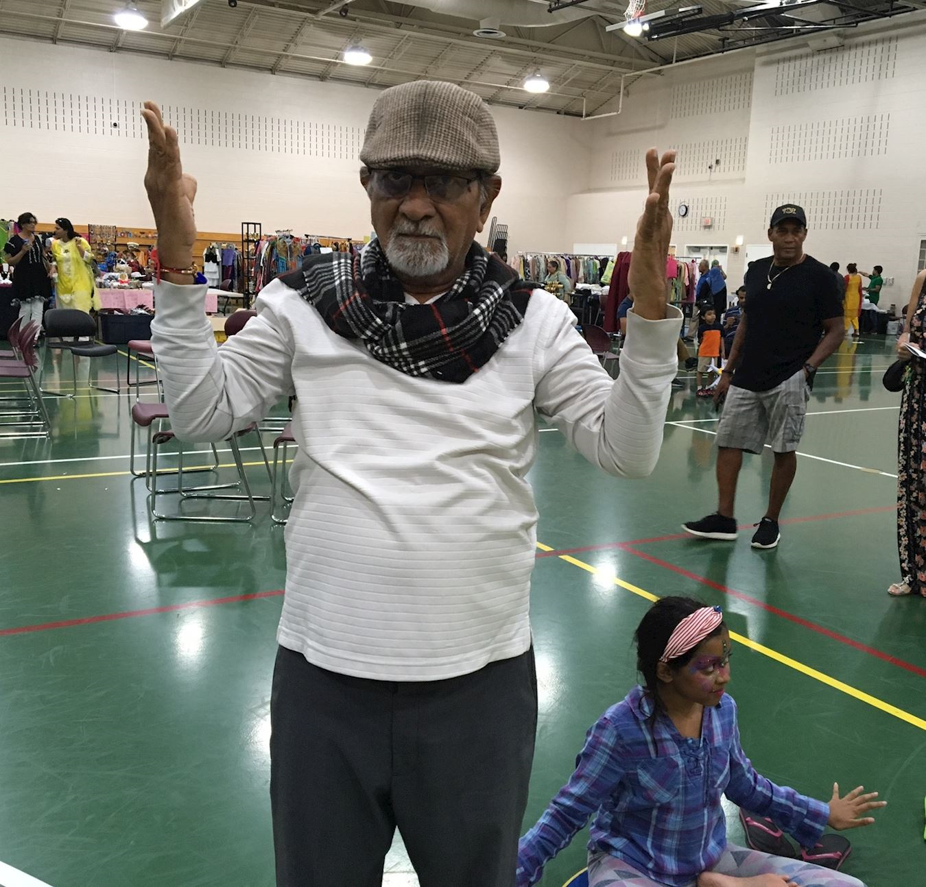 一位约十二岁的印度男孩在旁边看着孟加拉男孩学,他也来学,一会,一个约十一岁的印度小姑娘蹦蹦跳跳过来了,直接站在旁边学功。他们三人把五套功法都学完了,才依依不舍地离开。期间,有人给他们拍了很多照,并开心笑着,原来两位印度少年是兄妹俩,拍照的是他们的爸爸。听了功法介绍后,他说他们全家都要学炼法轮功。